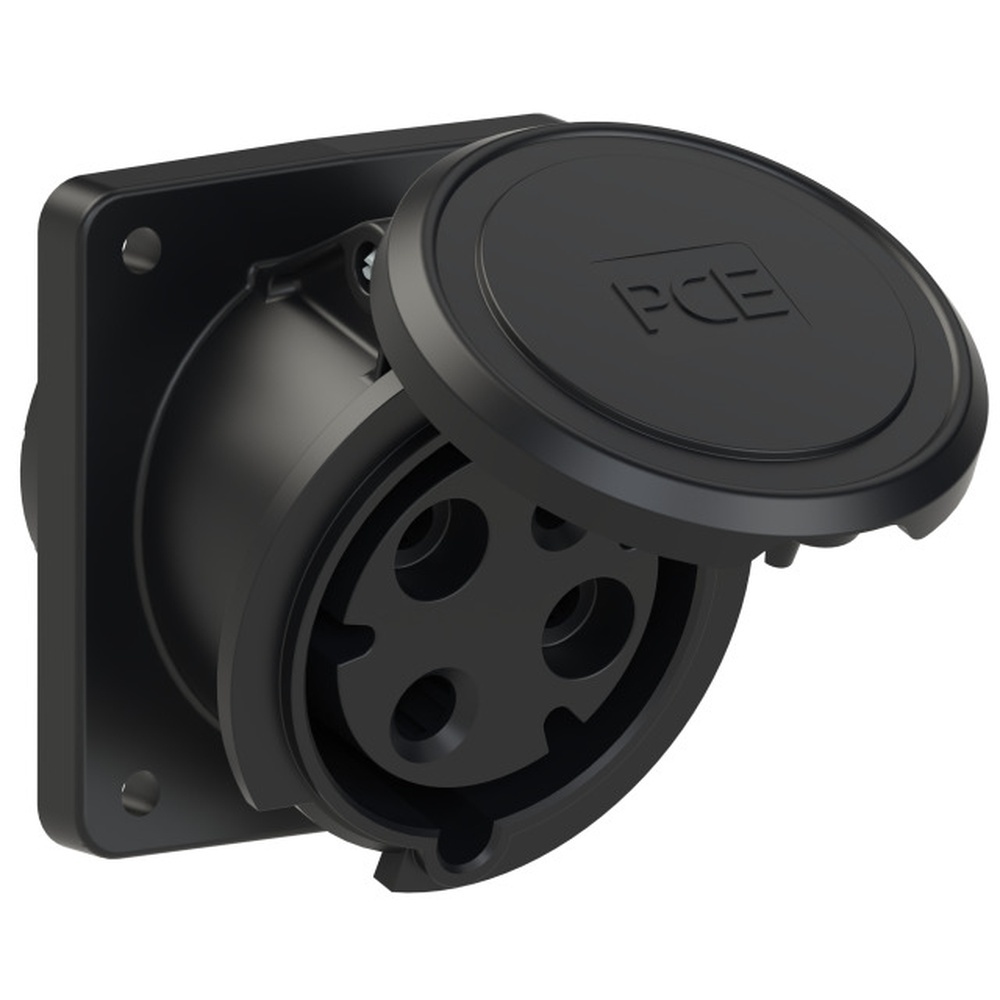 PC Electric Anbaudose 4331-7fc Anbaudose schräg 63A 3p 7h IP44 Power Twist Flansch 100x107-Lochabstand 77x85, Rahmenklemme mit Schrauben, Gehäusematerial PA6, Kontakte Messing mit Lamellenkontakt CuBe Hersteller PC Electric ( PCE ) Warengruppe PC Electric Anbausteckdosen