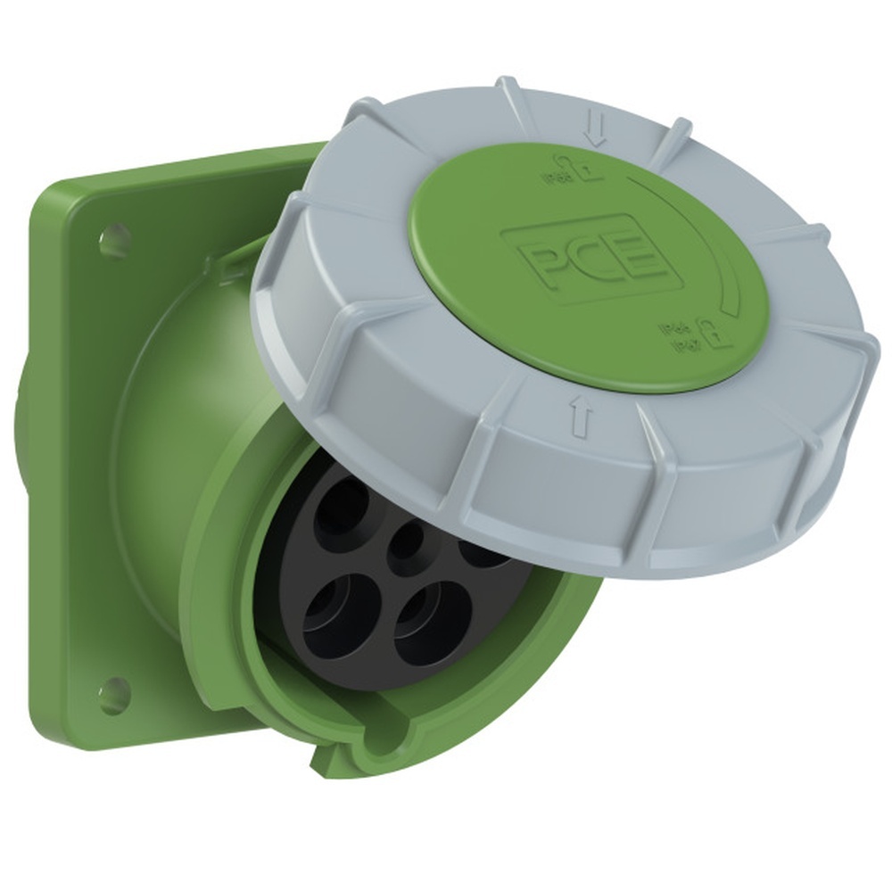PC Electric Anbaudose 435-10fc Anbaudose schräg 63A 5p 10h IP66/67 Power Twist Flansch 100x107-Lochabstand 77x85, Rahmenklemme mit Schrauben, Gehäusematerial PA6, Kontakte Messing mit Lamellenkontakt CuBe Hersteller PC Electric ( PCE ) Warengruppe PC Electric Anbausteckdosen