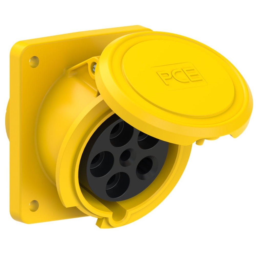PC Electric Anbaudose 4351-4 Anbaudose schräg 63A 5p 6h IP44 Power Twist Flansch 100x112-Lochabstand 80x88, Rahmenklemme mit Schrauben, Gehäusematerial PA6, Kontakte Messing mit Lamellenkontakt CuBe Hersteller PC Electric ( PCE ) Warengruppe PC Electric Anbausteckdosen