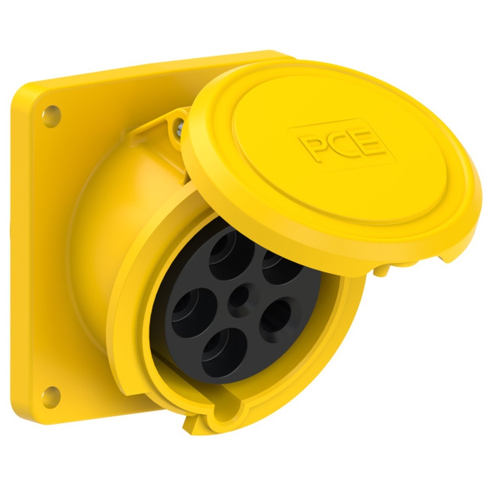 PC Electric Anbaudose 4351-4fd Anbaudose schräg 63A 5p 4h IP44 Power Twist Flansch 106x110-Lochabstand 90x90, Rahmenklemme mit Schrauben, Gehäusematerial PA6, Kontakte Messing mit Lamellenkontakt CuBe Hersteller PC Electric ( PCE ) Warengruppe PC Electric Anbausteckdosen