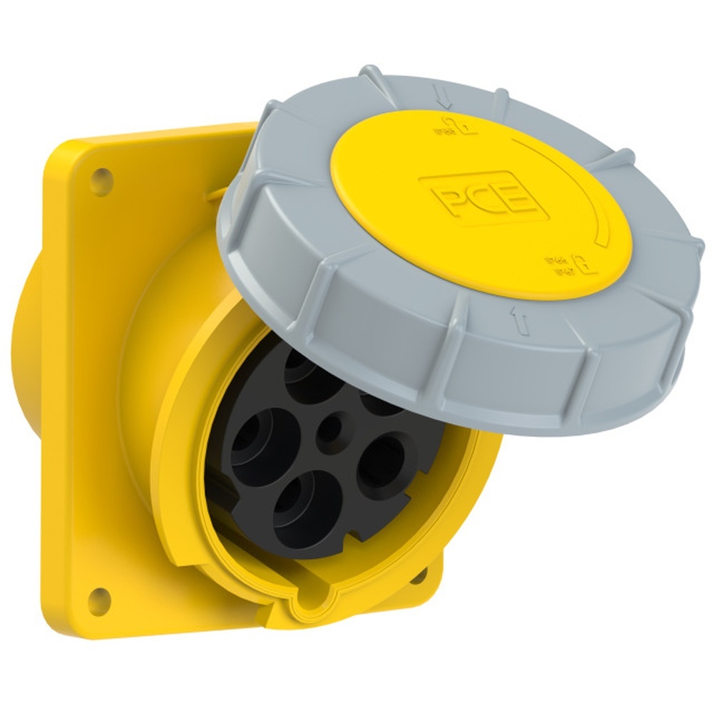PC Electric Anbaudose 445-4 Anbaudose schräg 125A 5p 4h IP66/67 Power Twist Flansch 120x130-Lochabstand 100x108, Rahmenklemme mit Innensechskantschrauben, Gehäusematerial PA6, Kontakte Messing mit Lamellenkontakt CuBe Hersteller PC Electric ( PCE ) Warengruppe PC Electric Anbausteckdosen