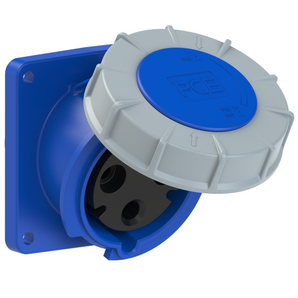PC Electric Anbausteckdose 433-6fd Anbausteckdose schräg 63A 3p 6h IP66/67 Power Twist Flansch 106x100-Lochabstand 90x90, Rahmenklemme mit Schrauben, Gehäusematerial PA6, Kontakte Messing mit Lamellenkontakt CuBe Hersteller PC Electric ( PCE ) EAN Nr. 9003399199691 Warengruppe PC Electric Anbausteckdosen