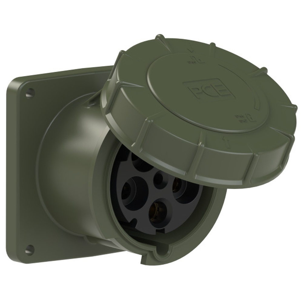 PC Electric CEE Anbausteckdose 345-6.u CEE-Anbausteckdose gerade (120x120) 125A 5p 6h IP67 POWER TWIST bronzegrün CEE-Anbausteckdose gerade (120x120) 125A 5p 6h IP67 POWER TWIST bronzegrün, Gehäusematerial: PA6, Nennstrom: 125A, Polzahl: 5 (3P+N+PE), Uhrzeit-Stellung: 6h, Nennspannung/Frequenz: 200/346V~-240/415V~/50+60Hz, Kontakte: Messing, mit Lamellenkontakt (CuBe), Anschlusstechnik: Rahmenklemmen mit Schrauben, Abmessungen (Flansch/Bohrung): 120x120 mm/100x100 mm, Schutzart: IP66/IP67 Hersteller PC Electric Nr. 3456u EAN Nr. 9003399291746 Warengruppe PC Electric Anbausteckdosen