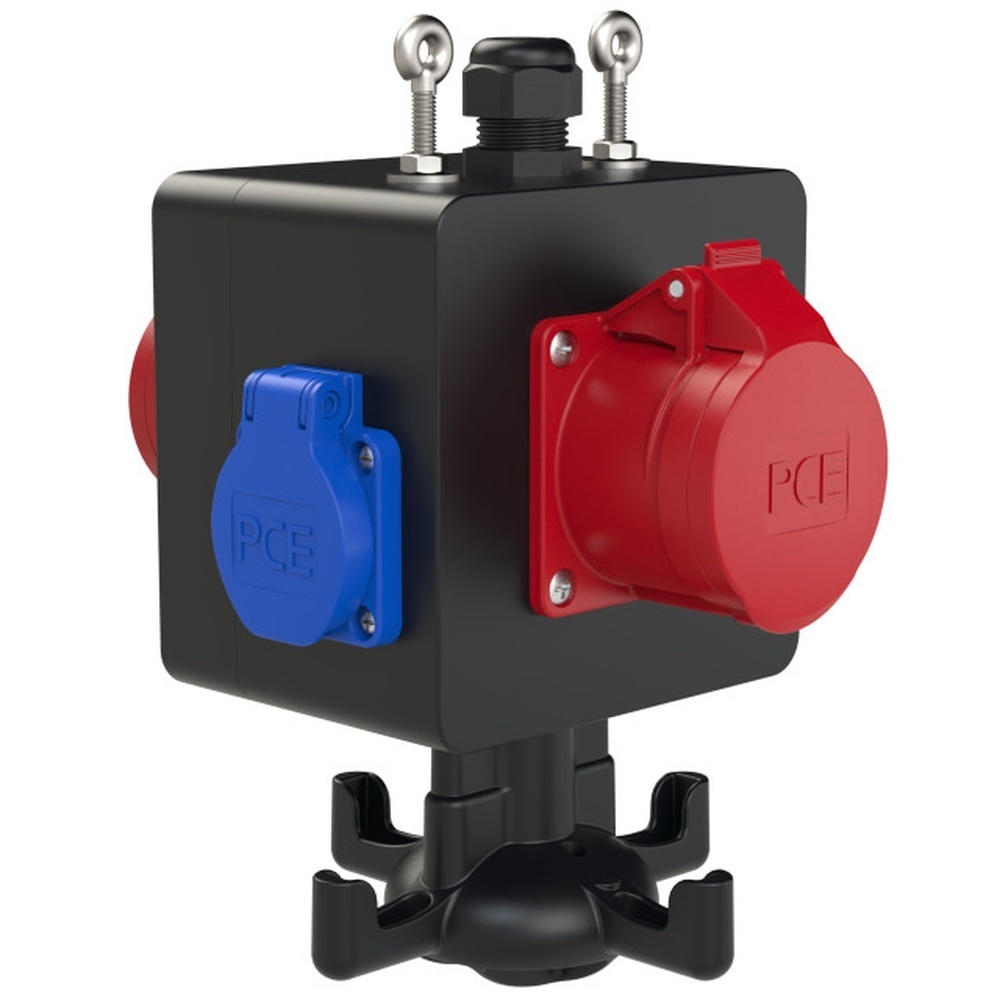 PC Electric Hängeverteiler 9848250 Hängeverteiler Vollgummi Baureihe FREISTADT HV 2x16/5 2xSSD M20o m.Grif VC IP54 Vollgummiverteiler Modell FREISTADT (NAARN) IP54 129x129x100, mit Griffhaken und Aufhängeösen, 1xM20 Verschraubung oben (Kabeldurchm. 10-14mm PG16) schwarz, 2xCEE-Steckdose 16A 5p 400V ungesichert, 2xSK-Steckdose 16A 250V IP54 ungesichert, Verteiler auf Vario-Connector 5polig 10qmm verdrahtet Hersteller PC Electric Nr. 9848250 EAN Nr. 9003399057526 Warengruppe PC Electric Kleinverteiler