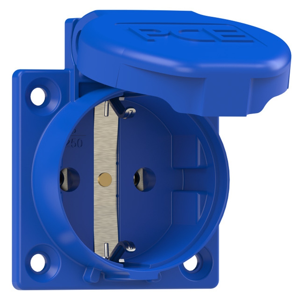 PC Electric Schutzkontaktsteckdose 1050-0bsw Schutzkontaktsteckdose nach österr./deutsch. System mit Dichtrand 16A 3p 250V IP54 P-Nova+ blau, seitlicher Anschluss, Flansch 50x50, mit Schraubkontakt, Gehäusematerial PA6, Kontakte vernickelte Kontakte Hersteller PC Electric ( PCE ) EAN Nr. 9003399938382 Warengruppe PC Electric Steckdosen