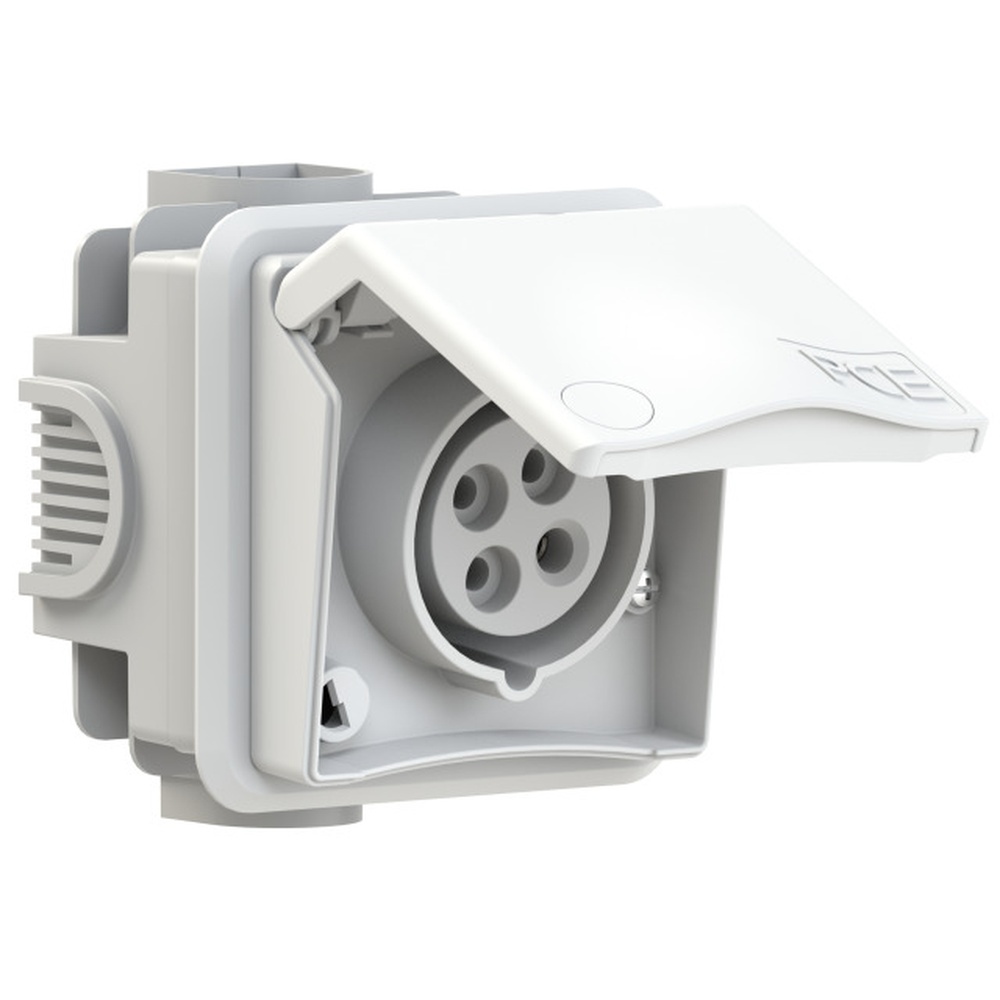 PC Electric Unterputzsteckdose 884-4v Design Unterputzsteckdose 16A 4p 4h IP44, mit durchschleifbarem Schraubklemmen, Gehäusematerial PC/ABS, Kontakte vernickelte Kontakte, Leitungseinführung von oben, unten, seitlich oder hinten mittels Ausbruch, in Reihe horizontal und vertikal steckbar, mit Beschriftungsfeld, mit integriertem Abdeckrahmen und fixer Neigung 6 Grad geringe Ausladung 35mm Hersteller PC Electric ( PCE ) Warengruppe PC Electric Design Steckdosen