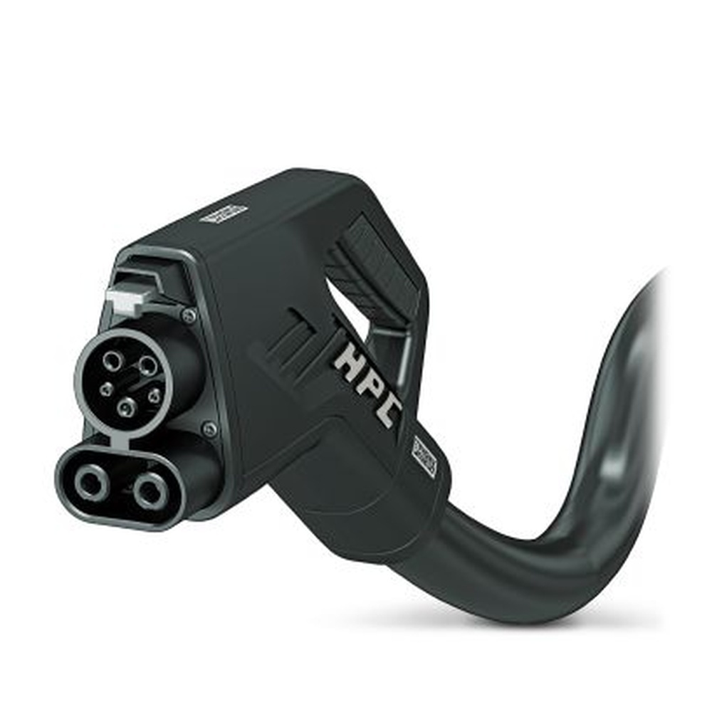 Phoenix Contact DC Ladekabel 1085658 Typ EV-T1HPCC-DC500A-5,0M50ECBK11 DC-Ladekabel CHARX connect, HPC-DC-Ladeleitung mit gekühltem Fahrzeug-Ladestecker und gekühlter Leitung, mit zusätzlicher CCS Typ 1 Ladesteckerhalterung, mit austauschbarem Steckgesichtrahmen, ohne Wanddurchführung, zum Laden mit Gleichstrom (DC) von Elektrofahrzeugen (EV), zur Installation an Ladestationen für die Elektromobilität (EVSE), Combined Charging System, High Power Charging, HPC CCS Typ 1, SAE J1772, IEC 62196-3-1, 500 A/1000 V (DC), HPC-Line, PHOENIX CONTACT -Logo, Kabel: 5 m, schwarz, gerade Hersteller Phoenix Contact Nr. 1085658 Typ EV-T1HPCC-DC500A-5,0M50ECBK11 EAN Nr. 4055626873589 Warengruppe Phoenix Contact Zubehör