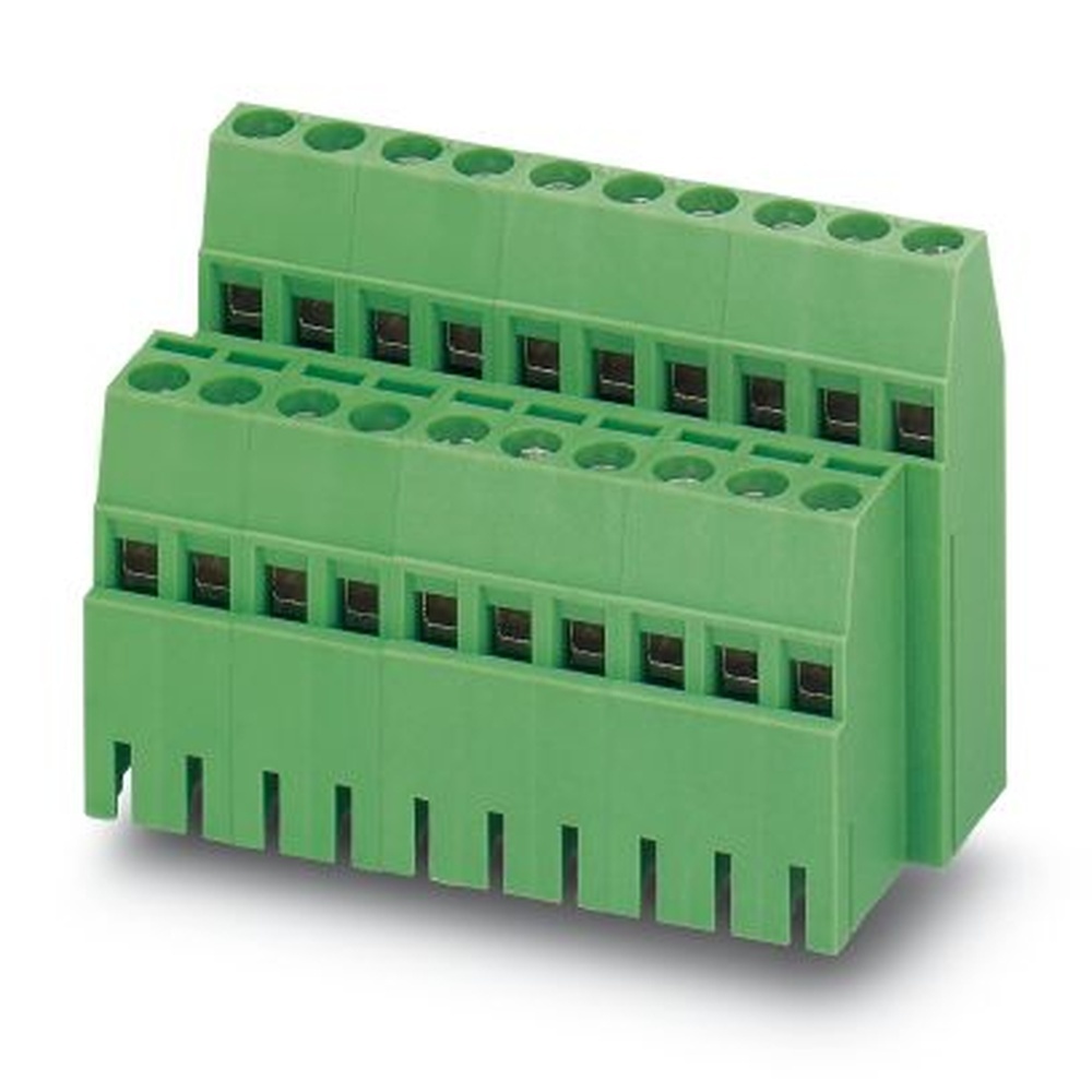 Phoenix Contact Leiterplattenklemme 1706426 Typ MK3DS 1,5/ 3-5,08-BC Leiterplattenklemme Leiterplattenklemme, Polzahl pro Reihe: 3, Artikelfamilie: MK3DS 1,5/.- BC, Rastermaß: 5,08 mm, Schraubenangriffsform: L Längsschlitz, Farbe: grün, Pin-Layout: Lineares Pinning, Pinlänge [P]: 3,5 mm, Verpackungsart: verpackt im Karton. Der Artikel ist zu unterschiedlichen Polzahlen anreihbar! Hersteller Phoenix Contact Nr. 1706426 Typ MK3DS 1,5/ 3-5,08-BC EAN Nr. 4017918144715 Warengruppe Phoenix Contact Leiterplattensystem