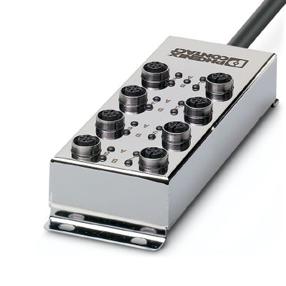 Phoenix Contact Sensor Aktor Box 1555541 Typ SACB-8/16-L- 5,0PVC FB Sensor-/Aktor-Box Sensor-/Aktor-Box, Anwendung: Lebensmittelindustrie, Anschlussart: M12-Buchse Edelstahl, Anzahl der Steckplätze: 8, Polzahl: 5, Kodierung: A-Standard, Steckplatzbelegung: doppelt, Statusanzeige: Ja, pnp, Stammleitungsanschluss: Festanschluss 180°, PVC, Leitungslänge: 5 m, Schirmung: nein Hersteller Phoenix Contact Nr. 1555541 Typ SACB-8/16-L- 5,0PVC FB EAN Nr. 4046356170529 Warengruppe Phoenix Contact Sensor Aktor Kabel