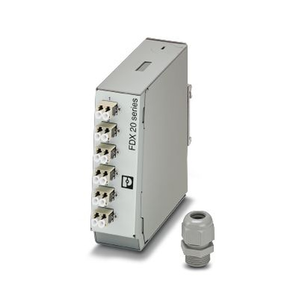 Phoenix Contact Verteiler 1019710 Typ FOC-FDX20-PP-LCD6-MM Verteiler Verteiler, Bauform: Tragschienenmodul, Schutzart: IP20, Material: Stahlblech, Anschlussart: Kabelverschraubung M20, Kabelabgang: oben und unten, Farbe: verkehrsgrau A RAL 7042, Ethernet Hersteller Phoenix Contact Nr. 1019710 Typ FOC-FDX20-PP-LCD6-MM EAN Nr. 4055626701042 Warengruppe Phoenix Contact Steckverbinder