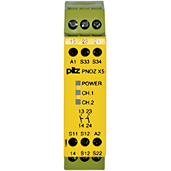 Pilz Sicherheitsschaltgerät 774326 Typ PNOZ X5 12VDC 2n/o PNOZ X5 12VDC 2n/o Sicherheitsschaltgerät (standalone), Eingänge: 1/2-kanalige Beschaltungohne Querschlusserkennung, Ausgänge: 2 S, automatischer/manueller Start,UB=12 V DC, Breite: 22,5 mm, Schraubklemmen integriert, Überwachungvon Not-Halt, Schutztüren. Hersteller Pilz Nr. 774326 Typ PNOZ X5 12VDC 2n/o EAN Nr. 4046548011555 Warengruppe Pilz Sicherheitsschaltgeräte
