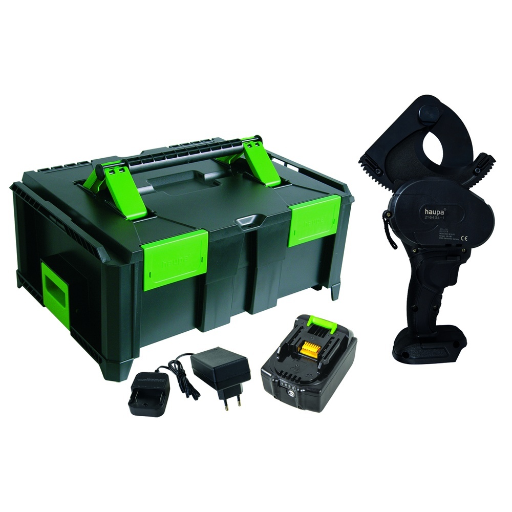 Haupa Akkukabelschneider 216436/F-1 Akkukabelschneider AS-52F Akku-Kabelschneider AS-52F, Wie AS-52ACSR, mit Messern speziell für feindrähtige Kabel, Durchmesser 52 mm Lieferumfang: 1 Schneidwerkzeug, 1 Schnellladegerät, 1 Akku 18V Li-Ion, 4 Ah, in SysCon Hersteller Haupa EAN Nr. 4011923613020 Warengruppe Haupa Schneiden u. Abisolieren