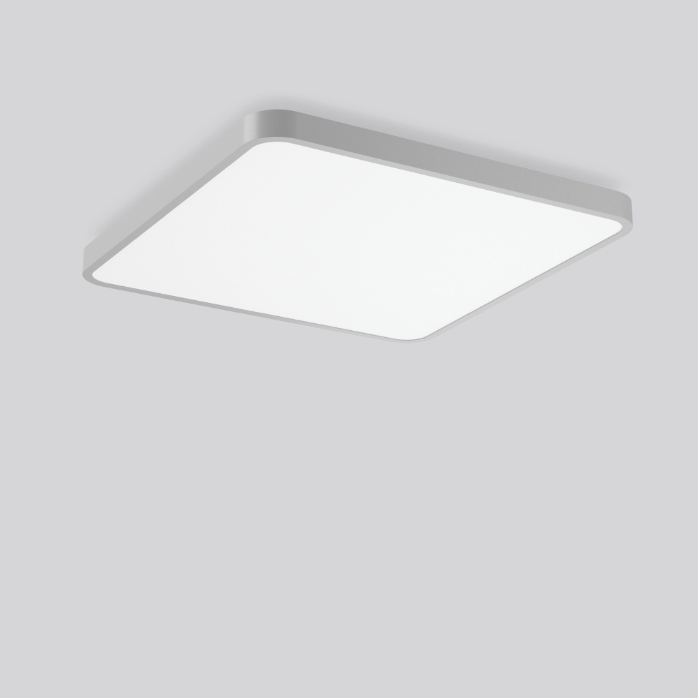 RZB Anbau Flächenleuchte 312661.004.1.76 TRIONA square, 102 W, 12900 lm, 840, silber, DALI Decken- und Wandleuchten, L 825 B 825 H 88, Kunststoff (PMMA) opal Dekorative quadratische LED Anbau-Flächenleuchte. Flacher nahtloser Rahmen Aluminium-Strangpressprofil pulverbeschichtet. Abdeckung Stahlblech pulverbeschichtet. Diffusor aus vergilbungsfreiem Kunststoff (PMMA) opal. LED Backlight-Technologie für eine homogene Ausleuchtung der gesamten lichtabgebenden Fläche. Geeignet für Deckenanbau, Wandanbau. Einfachste Installation durch Plug & Play Stecksystem. Betriebsgerät integriert. DALI dimmbar. Für Durchgangsverdrahtung geeignet. Hersteller RZB Nr. 312661.004.1.76 EAN Nr. 4051859921516 Warengruppe RZB Wandleuchte und Deckenleuchte
