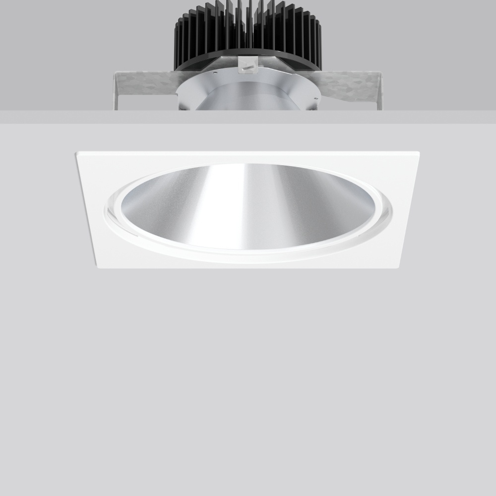 RZB Einbau Downlight 901805.002 Energieeffiziensklasse D PASCALA square, 11.39 W, 1550.4700 lm, 930, weiß, on/off Einbau-Downlights, L 242 B 242 H 3 HEL 156, 57 Grad Hochwertiges Einbau-Downlight. Haltebügel Stahlblech verzinkt. Innenring und quadratische Abschlussplatte Aluminium-Druckguss. Brillant leuchtende Corona an der Lichtaustrittsfläche durch den speziell gestalteten Aluminium-Druckguss-Ring als Reflektorabschluss. Reflektor aus MIRO-SILVER mit 98% Lichtgesamtreflexion. Patentierte runde Bauform als Kegelstumpf geformt. MultiLumen: 16 verschiedene Lichtströme sind über DIP-Schalter am separaten Betriebsgerät in ca. 200 lm-Stufen vor Ort einstellbar. Werkzeugloser Einbau durch Federbefestigung. Betriebsgeräte in separater Gerätebox mit angeschlossener Verbindungsleitung. Mit Verbindungsleitung L 400 mm. Betriebsgerät gleichspannungstauglich, geeignet für zentrale Notstromversorgung. Durchgangsverdrahtungsbox (5-polig) als Zubehör erhältlich. Hersteller RZB EAN Nr. 4051859918486 Warengruppe RZB Downlights