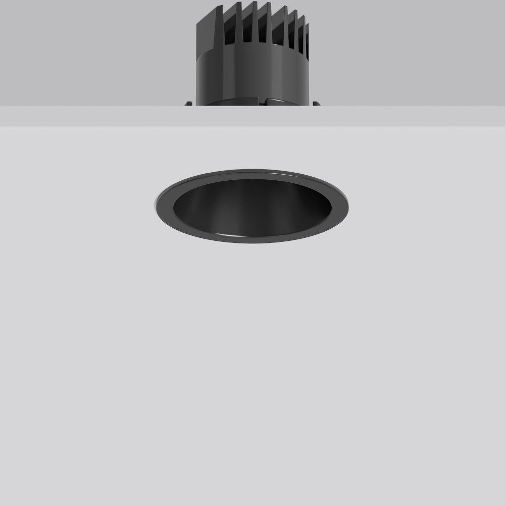 RZB Einbau Downlight 901831.003.76 Energieeffiziensklasse F LEVIDO round, 7,5/12 W, 590/920 lm, 830, schwarz, DALI Einbau-Downlights, D 91 H 2 HEL 95, 23 Grad Dekoratives rundes Einbau-Downlight in zierlich kleinen Abmessungen. Blende Aluminium-Druckguss pulverbeschichtet. Kühlkörper Aluminium-Druckguss. Reflektor Aluminium hochglanzeloxiert. Mit Schutzscheibe. Lichtverteilung mittelbreit-strahlend. Ausstrahlwinkel 23 Grad. MultiLumen: Leuchtenlichtstrom ist in 2 Stufen einstellbar. Werkseitig auf höchsten Leuchtenlichtstrom voreingestellt. Geeignet für Deckeneinbau. Deckenbefestigung mit Federsystem. Inklusive Betriebsgerät extern über Steckverbindung, Verbindungsleitung 250 mm. Für Durchgangsverdrahtung geeignet. Opale Kunststoffscheibe (PMMA) für einen gleichmäßig homogenen Lichtaustritt als Zubehör erhältlich. Hersteller RZB EAN Nr. 4051859944447 Warengruppe RZB Downlights