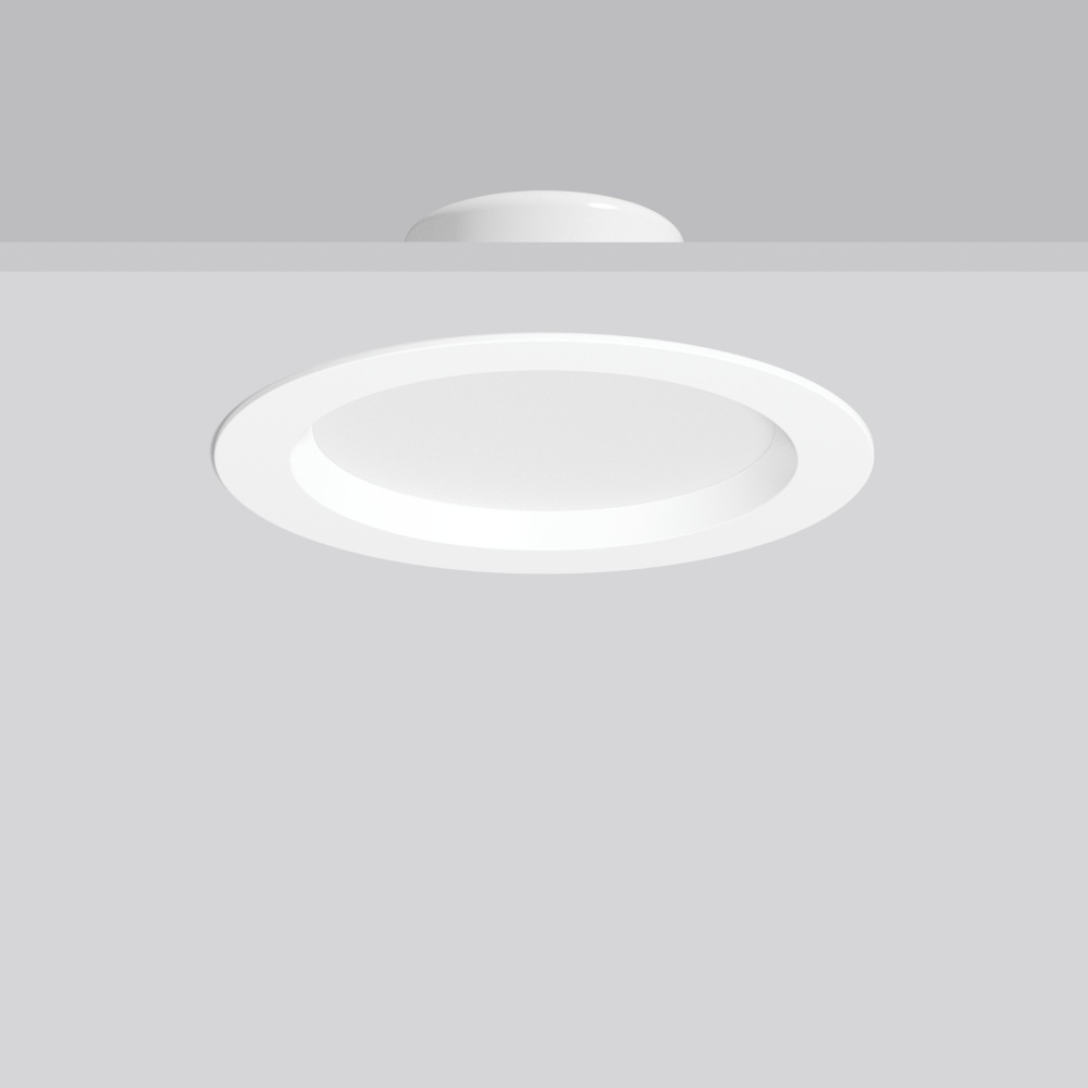 RZB Einbau Downlight HB 801 901697.002 HB 801, 20 W, 1700 lm, 830, 840, 857, weiß, on/off Einbau-Downlights, D 225 H 3, 106 Grad Rundes Einbau-Downlight. Gehäuse kunststoffbeschichtetes Aluminium. Passive Kühlung. Diffusor Kunststoff (Polycarbonat) opal, schlagzäh. MultiColour-Funktion: Farbtemperatur mit rückseitigem Schaltelement einstellbar. Auswahlmöglichkeit 3000 K, 4000 K oder 5700 K.Werkseitig auf 4000 K eingestellt. Werkzeugloser Einbau durch Federbefestigung. Betriebsgeräte eingebaut. Hersteller RZB Leuchten EAN Nr. 4051859462538 Warengruppe RZB Downlights