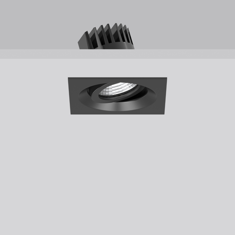 RZB Einbaustrahler 901837.003.1.76 Energieeffiziensklasse F LEVIDO SWING square, 7,5/12 W, 670/1050 lm, 840, schwarz, DALI Einbaustrahler, L 98 B 98 H 2 HEL 80, 23 Grad Quadratischer Einbaustrahler mit sehr kleinen Abmessungen. Blende Aluminium-Druckguss pulverbeschichtet. Kaltfließgepresster Kühlkörper Aluminium. Reflektor Aluminium hochglanzeloxiert. Mit Schutzscheibe. ± 25 Grad schwenkbar. Lichtverteilung mittelbreit-strahlend. Ausstrahlwinkel 23 Grad. MultiLumen: Leuchtenlichtstrom ist in 2 Stufen einstellbar. Werkseitig auf höchsten Leuchtenlichtstrom voreingestellt. Geeignet für Deckeneinbau. Leuchtenbefestigung mit Federsystem. Inklusive Betriebsgerät extern über Steckverbindung, Verbindungsleitung 250 mm. Für Durchgangsverdrahtung geeignet. Opale Kunststoffscheibe (PMMA) für einen gleichmäßig homogenen Lichtaustritt als Zubehör erhältlich. Hersteller RZB EAN Nr. 4051859945420 Warengruppe RZB Strahler