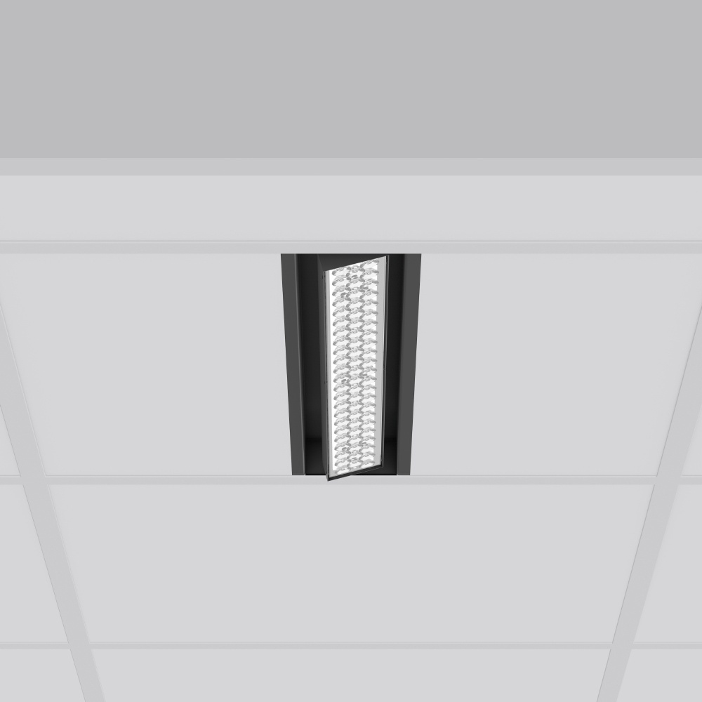 RZB Flächenstrahler 901852.003.2 TX-MOVE, 16...31 W, 2000...3550 lm, 927, schwarz, on/off Einbaustrahler, L 597 B 116 H 39, 62° Einlege/Einbau-Flächenstrahler. Gehäuse Stahlblech pulverbeschichtet. 90° vertikal schwenkbar. Hocheffiziente LED-Einheiten mit optimaler Lichtlenkung durch präzise Linsenoptik aus Kunststoff (PC) klar. Spezielle Mikrostrukturen reduzieren Gelbsaum. Lichtverteilung symmetrisch. Beste Farbwiedergabe durch CRI >90 für Frischware und bunte Textilien. Geeignet zum Einlegen in Rasterdecken Modul 625. Inklusive angeschlossenem Betriebsgerät in separater Gerätebox. Geeignet für Durchgangsverdrahtung. MultiLumen: Leuchtenlichtstrom ist in 3 Stufen einstellbar. Zubehör: Einbaurahmen zur Montage in abgehängte Decken. Umweltfreundlich und ressourcenschonend durch austauschbare und recycelbare Komponenten. Hersteller RZB Nr. 901852.003.2 EAN Nr. 4068754032025 Warengruppe RZB Strahler