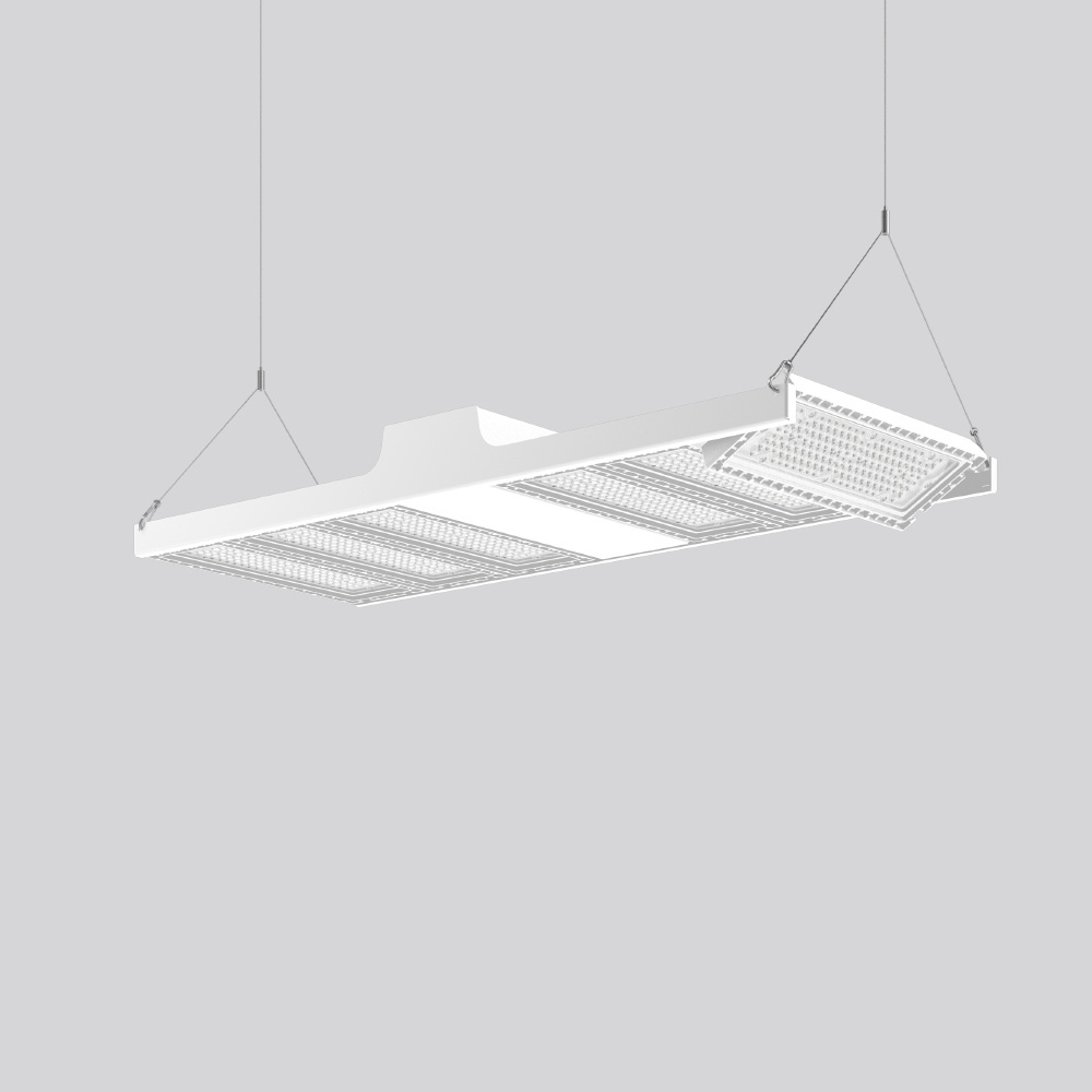 RZB Hallenstrahler 921689.002.76 Energieeffiziensklasse C LIGHT CASE, 335 W, 53000 lm, 840, weiß, DALI Hallenstrahler, L 956 B 397 H 110, 35 Grad/21 Grad Flacher Hallenstrahler für Ketten- oder Seilabhängung mit 6 schwenkbaren LED-Modulen. Gehäuse Aluminium-Druckguss und Stahlblech pulverbeschichtet. Optimiertes Thermomanagement durch spezielles Leuchtendesign. Selbstreinigender Kühlkörper für konstante Wärmeableitung. Abdeckung Kunststoff (Polycarbonat, schlagzäh) mit integriertem vierreihigen Linsensystem. LED-Module ± 30 Grad schwenkbar für optimale Ausleuchtung. CLO Steuerung für gleichbleibende Lichtleistung über die gesamte Lebensdauer. Pendelabhängung über Kette oder Stahlseil bauseits. Mit 5-poliger Anschlussleitung (1,5 m). Auf Anfrage mit integriertem Bewegungsmelder und Lichtsensor für Tageslichtregelung. Ballwurfsicher nach DIN 18032-03 (ausgenommen Pendelabhängung über Stahlseil). Leuchten mit begrenzter Oberflächentemperatur nach DIN EN 60598-2-24 zur Verwendung in einer Umgebung, in der eine Ablagerung von leitfähigem Staub auf der Leuchte erwartet werden kann. DALI-Betriebsgerät gleichspannungstauglich, geeignet für zentrale Notstromversorgung. Hersteller RZB EAN Nr. 4051859699972 Warengruppe RZB Strahler