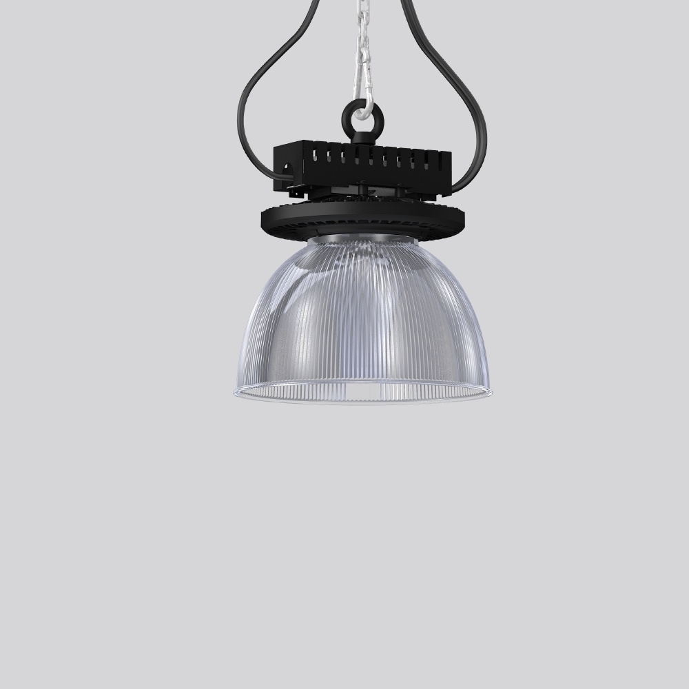 RZB Hallenstrahler 921718.003.76 Energieeffiziensklasse D INDUSTRIAL HALL, 80 W, 10100 lm, 840, schwarz, DALI Hallenstrahler, D 315 H 358, 60 Grad Runder Hallenstrahler für Ketten- oder Seilabhängung. Robustes Gehäuse aus Aluminium-Druckguss mit Ringöse, pulverbeschichtet. Vertikale Kühlrippen gewährleisten eine konstante Wärmeableitung und sorgen somit für ein optimales Thermomanagement. Diffusor aus entspiegeltem Einscheiben-Sicherheitsglas (ESG) klar. Refraktor Kunststoff (PMMA) klar. Einfache Installation durch Ein-Punkt-Aufhängung. Pendelabhängung über Kette oder Stahlseil bauseits. Leuchten mit begrenzter Oberflächentemperatur nach DIN EN 60598-2-24 zur Verwendung in einer Umgebung, in der eine Ablagerung von leitfähigem Staub auf der Leuchte erwartet werden kann. Zugelassen für den Einsatz in der Lebensmittel- und Getränkeindustrie. Hersteller RZB EAN Nr. 4051859930143 Warengruppe RZB Strahler