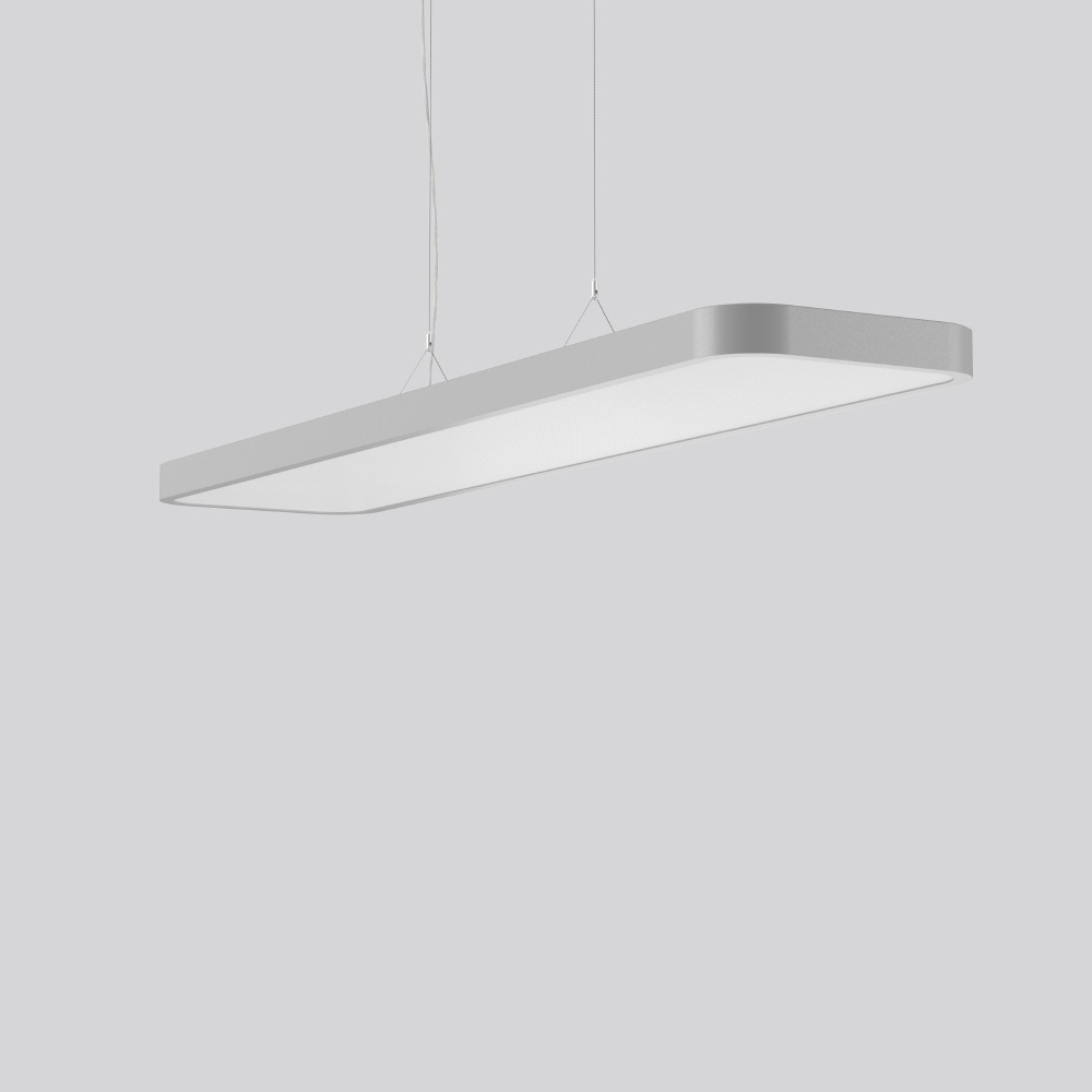 RZB LED Pendel Flächenleuchte 312731.004.76 TRIONA rectangle, 49 W, 6250 lm, 830, silber, DALI Pendelleuchten, L 1560 B 350 H 52, Kunststoff (PMMA) opal/prismatisch Dekorative rechteckige LED Pendel-Flächenleuchte. Flacher nahtloser Rahmen Aluminium-Strangpressprofil pulverbeschichtet. Abdeckung Stahlblech pulverbeschichtet. Baldachin Aluminium pulverbeschichtet. Diffusor aus vergilbungsfreiem Kunststoff (PMMA) mikroprismatisch. LED Backlight-Technologie für eine homogene Ausleuchtung der gesamten lichtabgebenden Fläche. 2-Punkt Stahlseilabhängung stufenlos höhenverstellbar. Einfache Montage mit transparenter, kürzbarer Pendelleitung und Baldachin mit Magnetbefestigung. Betriebsgerät integriert. DALI dimmbar. Für Durchgangsverdrahtung geeignet. Hersteller RZB Nr. 312731.004.76 EAN Nr. 4051859968429 Energieeffizienz E Warengruppe RZB Pendelleuchte