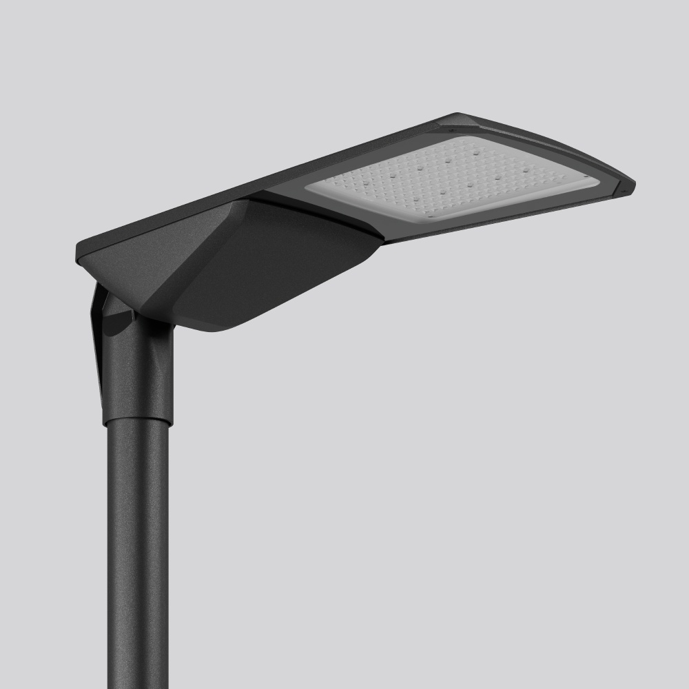RZB Mastansatz und Mastaufsatzleuchte 612311.0031.76.N Energieeffiziensklasse D MINGATA INTERNATIONAL midi, 66 W, 9650 lm, 730, anthrazit, DALI Mastansatz- und Mastaufsatzleuchten, L 700 B 340 H 100, Glas klar Funktionsorientierte Mastansatz- und Mastaufsatzleuchte im modernen Design. Gehäuse aus korrosionsbeständigem Aluminium-Druckguss, seewasserbeständig pulverbeschichtet. Mastaufsatz mit integrierter Leitungsführung und Edelstahlschrauben. Serienmäßig mit Membranventil zur Kondenswasservermeidung. Anstellwinkel in 5 Grad-Schritten mit Winkelskala einstell- und verriegelbar. Abdeckung Einscheiben-Sicherheitsglas (ESG) klar. 1 x LED-Modul mit 176 LEDs. Einteilige Multilayer-Linsenabdeckung. Asymmetrische Lichtverteilung (V category Type IV very short/ Forward Throw). Leuchten für Mastzopf ø 76 mm (mit optionalem Reduzierstück auch für Mastzopf ø 60 mm geeignet). Werkzeuglose Wartung/Austausch durch Eccentric-Lock-System mit Trennstecker und Hybrid-Lock-System. DALI-Betriebsgerät mit integriertem Überspannungsschutz bis 10 kV. Mit Programmierschnittstelle NFC. Konstant-Lichtstrom-Regelung (CLO). Zusätzlicher 10 kV-Überspannungsschutz für Leuchteneinbau (L,N,Erde). Vormontierte Anschlussleitung 3 x 1,5 mm² (H07RN-F), Länge 12,5 m. 7-Pin NEMA-Sockel mit Shorting Cap. Reduzierstück für Mastzopf D 60 mm bitte separat bestellen. Hersteller RZB EAN Nr. 4051859698821 Warengruppe RZB Leuchtenmast