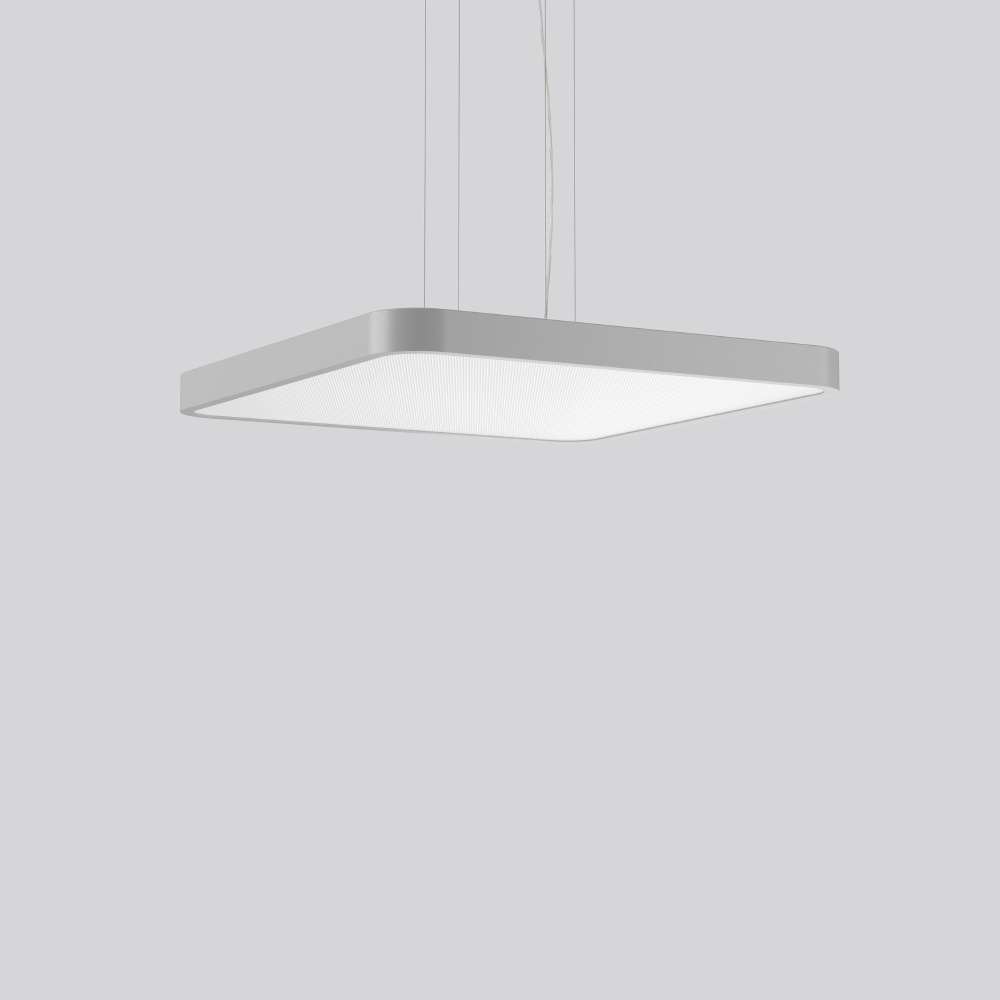 RZB Pendel Flächenleuchte 312442.004.1.730 TRIONA square, 41 W, 5800 lm, 840, silber, smart+free Pendelleuchten, L 696 B 696 H 52, Kunststoff (PMMA) opal/prismatisch Dekorative quadratische LED Pendel-Flächenleuchte. Flacher nahtloser Rahmen Aluminium-Strangpressprofil pulverbeschichtet. Abdeckung Stahlblech pulverbeschichtet. Baldachin Aluminium pulverbeschichtet. Diffusor aus vergilbungsfreiem Kunststoff (PMMA) mikroprismatisch. LED Backlight-Technologie für eine homogene Ausleuchtung der gesamten lichtabgebenden Fläche. 4-Punkt Stahlseilabhängung stufenlos höhenverstellbar. Einfache Montage mit transparenter, kürzbarer Pendelleitung und Baldachin mit Magnetbefestigung. Betriebsgerät integriert. DALI dimmbar. Für Durchgangsverdrahtung geeignet. Mit Casambi smart+free Bluetooth® Steuerung zur drahtlosen Vernetzung und Bedienung mittels Android/iOS Gerät, kostenlose App zum Download verfügbar. Hersteller RZB Nr. 312442.004.1.730 EAN Nr. 4051859453901 Warengruppe RZB Pendelleuchte