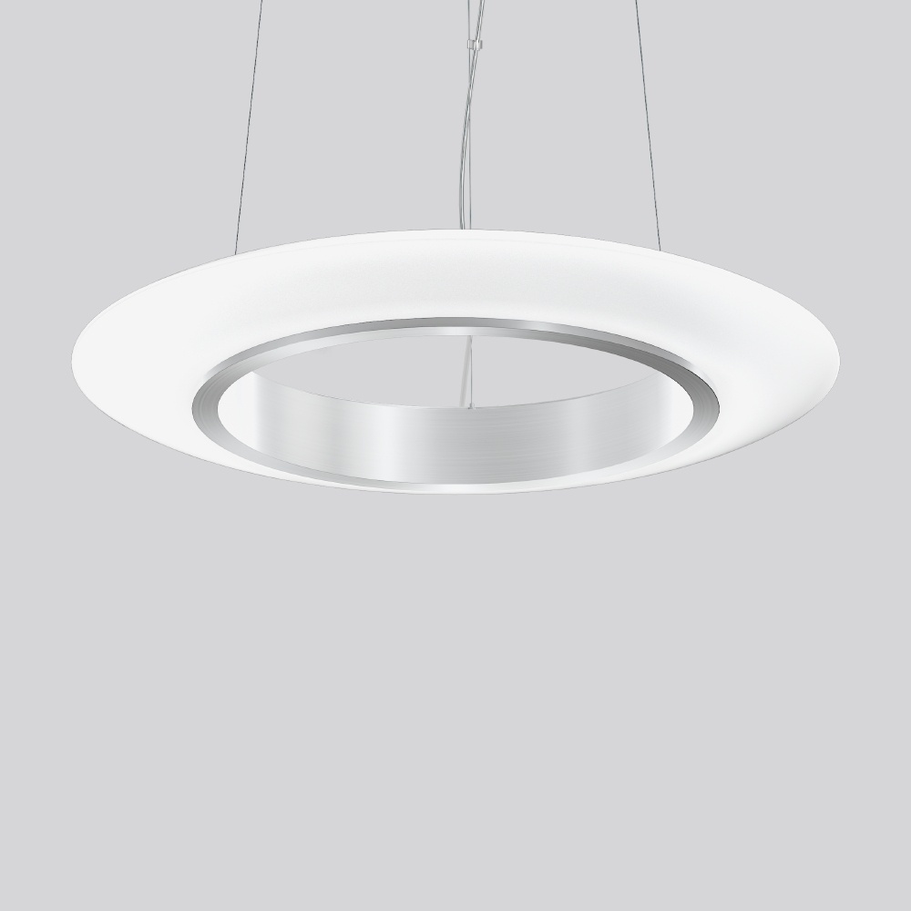RZB Pendelleuchte 311570.004.2.730 RING OF FIRE, 38...38 W, 3250...3500 lm, 827-865, aluminium, smart+free Pendelleuchten, D 690 H 81, Glas opal Eine in dieser Form einzigartige Pendelleuchte mit elliptischem Glas. Tragender Ring Aluminium eloxiert. Baldachin Aluminium eloxiert. Mundgeblasenes Opalglas seidenmatt. Tunable White dynamisch einstellbar von 2700 K bis 6500 K. Geeignet für Pendel. 3-Punkt Stahlseilabhängung stufenlos höhenverstellbar oder gewünschte Sonderlängen auf Anfrage. Stromzuführung über separate Zuleitung. Betriebsgerät im Baldachin integriert. Mit Casambi smart+free Bluetooth® Steuerung zur drahtlosen Vernetzung und Bedienung mittels Android/iOS Gerät, kostenlose App zum Download verfügbar. Hersteller RZB Nr. 311570.004.2.730 EAN Nr. 4051859258452 Warengruppe RZB Pendelleuchte