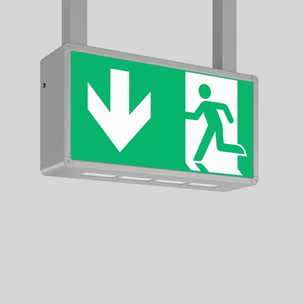 RZB Pendelleuchte 671089.004.1.07 RECHTECK, 7,3 W, silber Pendelleuchten, L 485 B 125 H 250, EB, 3 h, Not-85 lm, DALI-Sibe Rechteckige Pendelleuchte im klassischen Design. Zur Rettungswegkennzeichnung. Gehäuse Aluminium mit Eckverbindungen Kunststoff. Kunststoffscheiben opal mit Rettungszeichen einseitig/zweiseitig. Pendelabhängung Aluminium. Einzelbatteriesystem mit automatischem Selbsttest und Rückmeldung über DALI-Bus ausschließlich an das RZB DALI-Überwachungssystem. Symbolnummer für Rettungszeichen bei Bestellung angeben! Hersteller RZB Nr. 671089.004.1.07 EAN Nr. 4068754008440 Warengruppe RZB Pendelleuchte