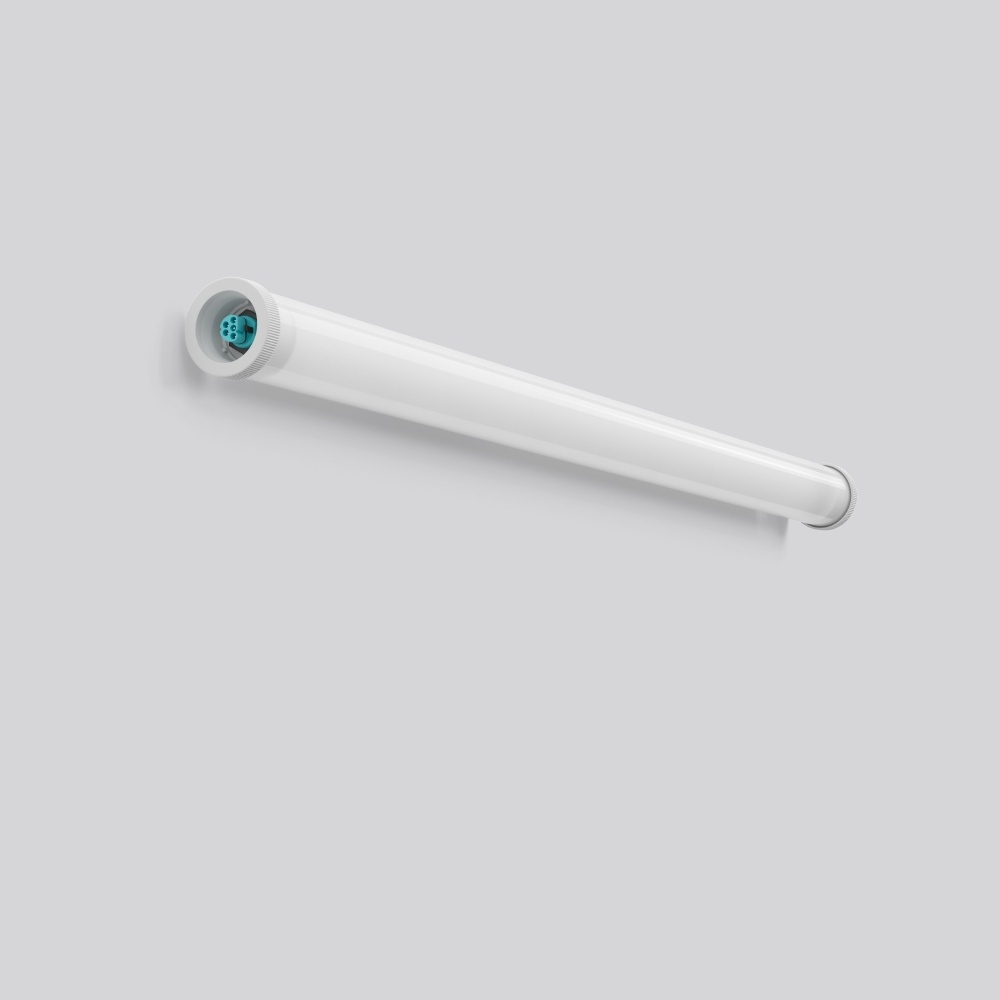 RZB Schutzrohrleuchte 601071.002.1.76 Energieeffiziensklasse C PLANOX TUBE, 39 W, 5350 lm, 840, weiß, DALI Rohrleuchten, Feuchtraumleuchten, D 78 L 1280, Kunststoff (PC) opal Robuste Schutzrohrleuchte für hohe Anforderungen. Geräteträger aus Stahlblech, weiß pulverbeschichtet. Endkappen aus Kunststoff (Polyamid) grau. Diffusor aus Kunststoff (Polycarbonat) opal, schlagzäh. Lichtverteilung symmetrisch. Homogene Ausleuchtung. Durch Zubehör für Wand-, Decken- und Pendelmontage geeignet. Betriebsgerät integriert. Einfache Installation durch Plug & Play Stecksystem Wieland RST CLASSIC. Leuchte mit integrierter Durchgangsverdrahtung für das Aneinanderreihen von weiteren Leuchten durch zwei Wieland RST Classic Steckverbinder (Stecker und Buchse). Zubehör für den elektrischen Anschluss muss separat bestellt werden. Zur Leuchte ist immer ein Montagezubehör mit zu bestellen. Leuchten mit begrenzter Oberflächentemperatur nach DIN EN 60598-2-24 zur Verwendung in einer Umgebung, in der eine Ablagerung von leitfähigem Staub auf der Leuchte erwartet werden kann. Zugelassen für den Einsatz in der Lebensmittel- und Getränkeindustrie. Zur Beleuchtung von öffentlichen Parkbauten und öffentlichen Parkplätzen nach DIN 67528 geeignet. Umweltfreundlich und ressourcenschonend durch austauschbare Komponenten. Keine Einwegleuchte. Hersteller RZB EAN Nr. 4051859759164 Warengruppe RZB sonstige Leuchten