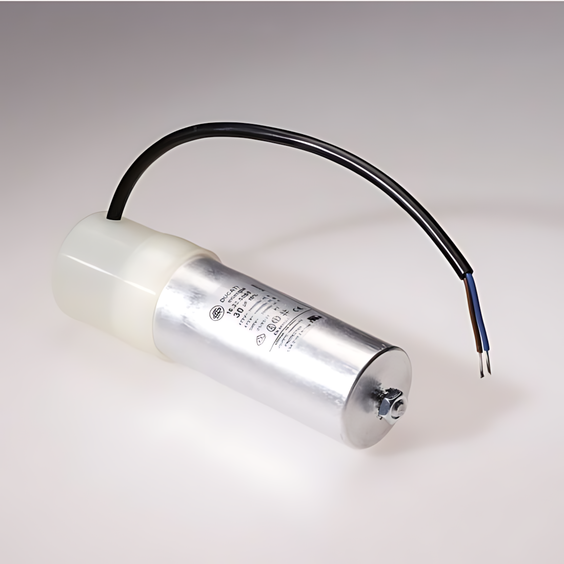 Schaum Motorkondensator 555035 MOTORKONDENSATOR Motor Kondensator 35,0 µF, 400 V mit Schutzkappe und 300mm Anschlußleitung Hersteller Schaum Elektro EAN Nr. 4024156003971 Warengruppe Schaum Kondensatoren