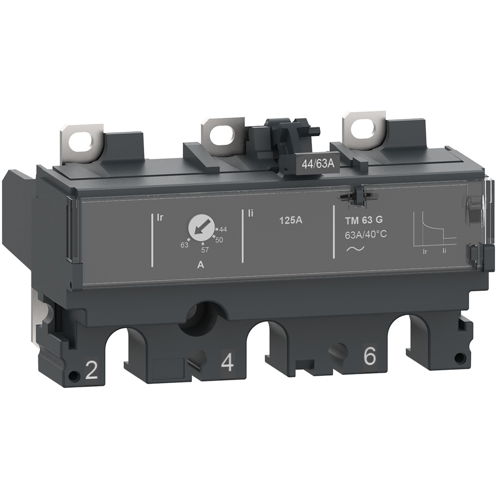 Schneider Electric Auslösegerät C103MG040 Auslösegerät thermomagnetisch TM40G Generatorschutz 40A 3P3D für Leistungsschalter ComPacT NSX100-250 Bei diesem TM40G handelt es sich um ein 3-poliges 3d-thermo-magnetisches Auslösegerät, das bei den Leistungsschaltern ComPacT NSX 100/160 zum Einsatz kommt. Dieses thermo-magnetische Auslösegerät mit einer Nennleistung von 40 A ist die beste Wahl für Generatorschutzanwendungen. Sie verfügt über einen einstellbaren thermischen Überlastschutz und einen festen magnetischen Schutz gegen Kurzschlüsse. Dieses Produkt ist Teil unserer EcoStruxure Power-Architektur, sofern es mit dem Grundschalter PowerTag NSX und ComPacT NSX kombiniert wird. Hersteller Schneider Electric Nr. C103MG040 EAN Nr. 3606482000506 Warengruppe Schneider Electric Leistungsschalter