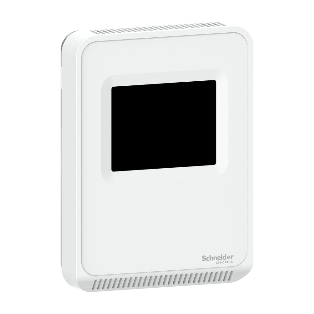 Schneider Electric Luftgütesensor SLASTCVX SpaceLogic Luftgütesensor Serie SLA, CO2, VOC, Temperatur, Raum, Farb-Touchscreen, Analogausgänge, mattweißes Gehäuse Die SpaceLogic SLA-Serie von Wandluftqualitätssensoren für Räume ist eine flexible Multisensor-Plattform für den Einsatz mit BAS-Controllern. Er ist für Ausgänge von 4 bis 20 mA, 0 bis 5 V DC oder 0 bis 10 V DC ausgelegt. Das wandmontierte Sensorgehäuse ist matt weiss Medium. Die Benutzeroberfläche wird durch einen Farb-Touchscreen mit Steuer- und Sollwertmenü gewährleistet. Dieser Luftqualitätssensor enthält ein Temperatur-, CO²- und VOC-Element. Die Abmessungen des Geräts betragen 115 mm in der Höhe, 85 mm in der Breite und 24 mm in der Tiefe. Hersteller Schneider Electric Nr. SLASTCVX EAN Nr. 3606481900487