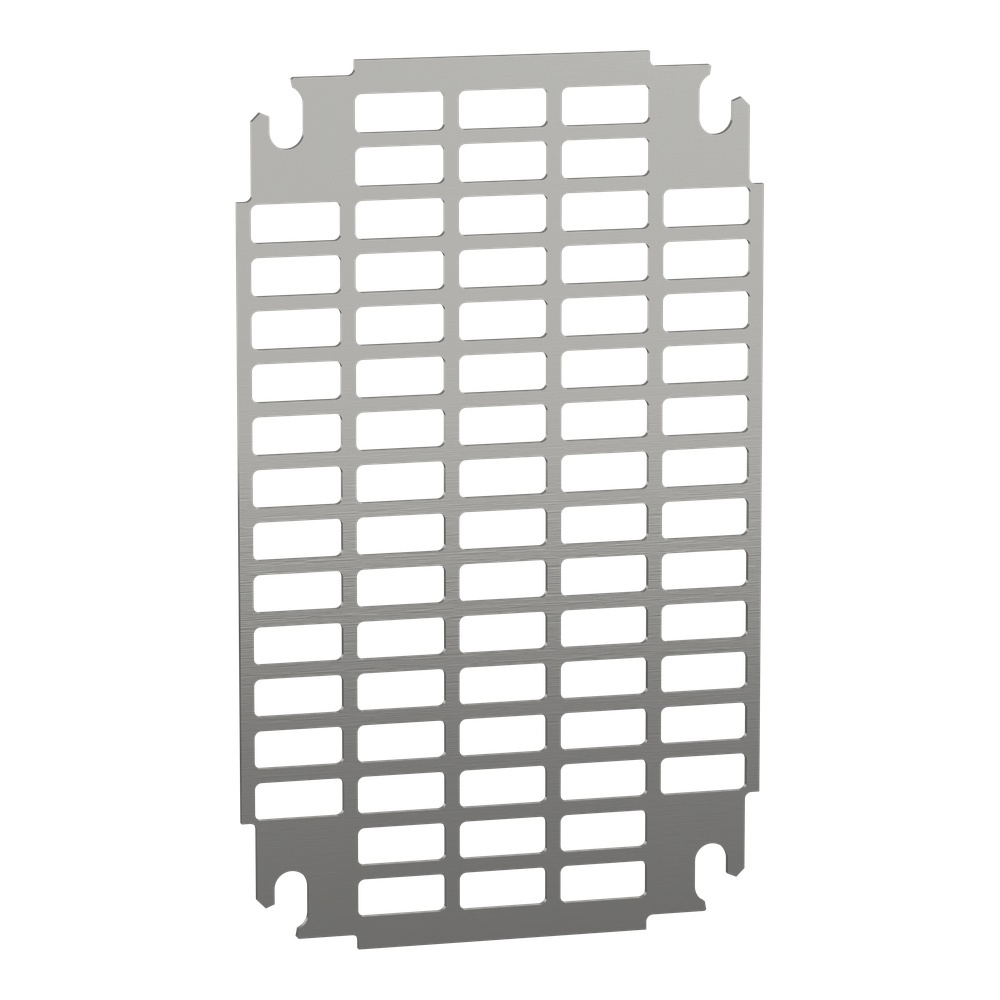 Schneider Electric Platten Monoblock NSYMR32 Monoblock-Lochbleche mit Universallochung für CRN, S3D, PLM. Für Gehäuse H300xB200 mm. Vielseitiges Zubehör. Stufenschlitten oder direkte Befestigung an der Befestigung der hinteren Bolzen (Schrauben M8). Telquick perforiert. Ausschnittabmessungen 11x26mm. Aus Stahl, verzinkte Oberfläche. 80 Slots. Besonderheit der Variante Installation in der Rückseite des Gehäuses. Hersteller Schneider Electric GmbH Nr. NSYMR32 EAN Nr. 3606480183614 Warengruppe Schneider Electric Universalgehäuse