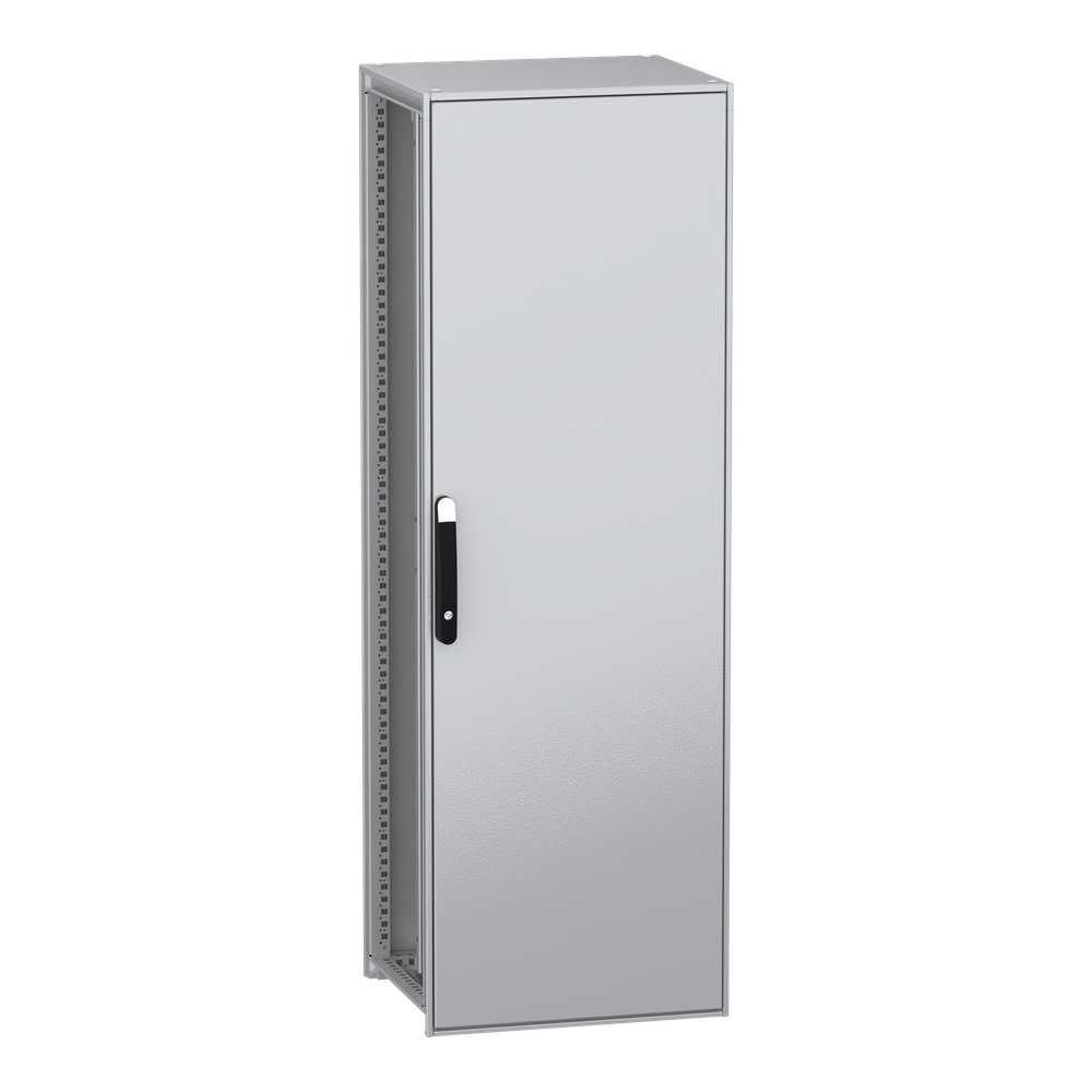 Schneider Electric Standgehäuse NSYSFN18650P Standgehäuse, elektrisch, PanelSeT SFN, aus dekarbonisiertem Stahl, mit Montageplatte, montiert, 1800x600x500mm, IP55 Dieses PanelSeT SFN ist ein Standgehäuse aus dekarbonisiertem Stahl, das für Mehrzweckanwendungen geeignet ist. Es enthält recycelten Stahl, der mit erneuerbarer Energie hergestellt wird, was zu einer erheblichen Reduzierung der CO2-Emissionen führt. Es hat eine Nennhöhe, -breite und -tiefe von 1800 mm, 600 mm bzw. 500mm. Der Rahmen und die Stützen des Gehäuses sind aus verzinktem Stahl gefertigt, um eine lange Lebensdauer zu gewährleisten. Die Tür und die Paneele sind aus Stahlblech gefertigt, während der Griff aus Polyamid 6 mit 30 % Glasfasern besteht. Eine Epoxid-Polyester-Pulverbeschichtung sorgt für ein ebenmäßiges Aussehen. Das Gehäuse hat eine graue (RAL 7035) Farbe mit einem schwarzen (RAL 9005) Griff. eine Einfache Tür, eine Rückwand, ein Dach, zwei Gleitschienen und ein Bausatz Schnellbefestigungshalterungen. Die Tür hat einen Öffnungswinkel von bis zu 120 Grad und ist reversibel, das heißt, sie kann von beiden Seiten geöffnet werden. Die Tür ist mit einem Vier-Punkt-Schloss und einem Griff mit 5-mm-Doppelbart versehen, der für Sicherheit sorgt. Das Gehäuse hat die Schutzart IP55, d.h. es ist resistent gegen das Eindringen von Staub, Wasser und Öl. Das Gehäuse ist außerdem stoßfest und hat eine IK10-Einstufung. Die Bedienung ist durch den Zugang von hinten, vorne und von der Seite komfortabel. Hersteller Schneider Electric Nr. NSYSFN18650P EAN Nr. 3606486102749 Warengruppe Schneider Electric Universalgehäuse