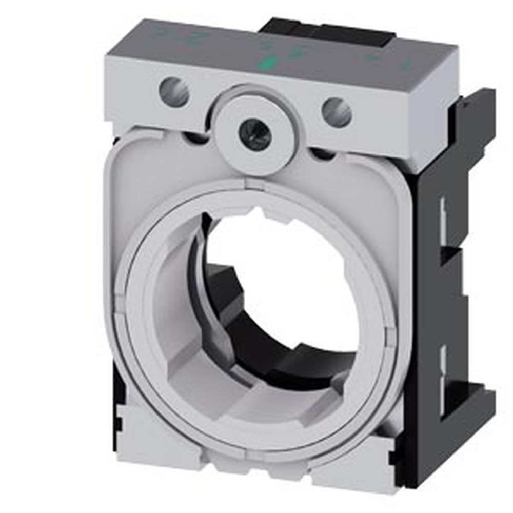 Siemens Halter 3SU1510-0AA10-0AA0 Halter für 3 Module, Metall Halter, 3fach, Metall, Mindestbestellmenge 5 oder ein Vielfaches davon Halter SIRIUS ACT für die Befestigung von modularen Betätigern und Meldern. Standard: 3-fach-Halter, 4-fach-Halter nur in Verbindung mit Koordinatenschalter/Knebelschalter mit 4 Stellungen.Unter dem Markennamen SIRIUS ACT bietet Siemens ein einzigartiges Portfolio an Befehls- und Meldegeräten mit weltweiten Produkt-Zulassungen in drei modernen Designreihen aus robustem Echtmetall und hochwertigem Kunststoff.Das innovative Aufschnappkonzept vereinfacht die Montage so weit, dass dafür nur eine Hand und kein Spezialwerkzeug erforderlich ist. Als Montagebohrungen genügen nutfreie Löcher, da bereits ein 100%iger Verdrehschutz integriert ist.Dank der durchgängig hohen Schutzart sind die robusten Geräte industrietauglich und für den Außeneinsatz geeignet. Sogar die Reinigung mit Hochdruckstrahl ist möglich. Weder Staub, Öle noch aggressive Laugen können den zuverlässigen Betrieb stören.Neben der Standardverdrahtung können die meisten Geräte auch über PROFINET, AS-Interface oder IO-Link an die Steuerung angebunden werden. Damit reduzieren Sie Ihren Verdrahtungsaufwand, minimieren Fehlerquellen und gewinnen mehr Flexibilität.Komfortabel unterstützt der grafische Online-Konfigurator bei Auswahl und Bestellung von Einzelgeräten, Gehäusen und Beschriftungen. Umfangreiche Dokumentation (z.B. Handbuch, 3D-Daten, Anschlussdiagramm) ist verfügbar.Lieferbare Ausführungen: Kunststoff/Metall, mit/ohne Module.SIRIUS ACT-Performance in Action beim Befehlen und Melden. Einfach montiert, einfach stark, einfach perfekt. Hersteller Siemens Nr. 3SU15100AA100AA0 EAN Nr. 4047621092461 Warengruppe Siemens SIRIUS