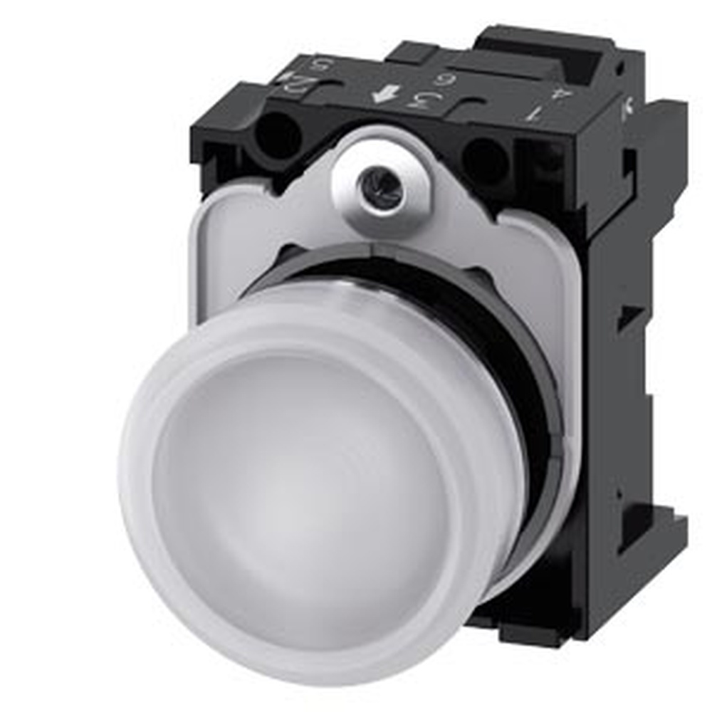 Siemens Leuchtmelder 3SU1156-6AA60-3AA0 Leuchtmelder, 22mm, rund, Metall, hochglanz, weiß, Linse, glatt, AC 230V Leuchtmelder, 22 mm, rund, Metall, hochglanz, weiß, Linse, glatt, mit Halter, LED-Modul mit integrierter LED AC 230 V, Federzuganschluss Leuchtmelder SIRIUS ACT zur Signalisierung von Schaltzuständen oder Störungen in Anlagen mit brillianter Leuchtkraft dank energieeffizienter LED-Technologie.Unter dem Markennamen SIRIUS ACT bietet Siemens ein einzigartiges Portfolio an Befehls- und Meldegeräten mit weltweiten Produkt-Zulassungen in drei modernen Designreihen aus robustem Echtmetall und hochwertigem Kunststoff.Das innovative Aufschnappkonzept vereinfacht die Montage so weit, dass dafür nur eine Hand und kein Spezialwerkzeug erforderlichist. Als Montagebohrungen genügen nutfreie Löcher, da bereits ein 100%iger Verdrehschutz integriert ist.Dank der durchgängig hohen Schutzart sind die robusten Geräte industrietauglich und für den Außeneinsatz geeignet. Sogar die Reinigung mit Hochdruckstrahl ist möglich. Weder Staub, Öle noch aggressive Laugen können den zuverlässigen Betrieb stören.Neben der Standardverdrahtung können die meisten Geräte auch über PROFINET, AS-Interface oder IO-Link an die Steuerung angebunden werden. Damit reduzieren Sie Ihren Verdrahtungsaufwand, minimieren Fehlerquellen und gewinnen mehr Flexibilität.Komfortabel unterstützt der grafische Online-Konfigurator bei Auswahl und Bestellung von Einzelgeräten, Gehäusen und Beschriftungen. Umfangreiche Dokumentation (z.B. Handbuch, 3D-Daten, Anschlussdiagramm) ist verfügbar.Lieferbare Ausführungen: mehrere Farben, verschiedene Spannungsvarianten.Hinweis: Komplettgerät, Lieferung inklusive Halter und Module.SIRIUS ACT-Performance in Action beim Befehlen und Melden. Einfach montiert, einfach stark, einfach perfekt. Hersteller Siemens Nr. 3SU11566AA603AA0 EAN Nr. 4011209967366 Warengruppe Siemens Befehls- Meldegeräte