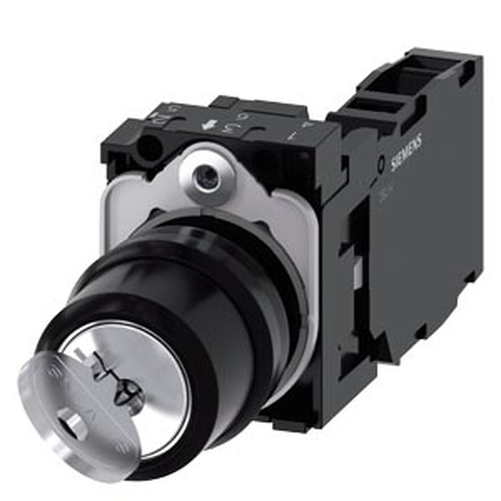 Siemens Schlüsselschalter 3SU1100-4BF11-1FA0 Schlüsselschalter RONIS, 22mm, rund, Kunststoff, Schlüsselabzug O+I, 1S+1Ö Schlüsselschalter RONIS, 22 mm, rund, Kunststoff, Schließ-Nr. SB30, mit 2 Schlüsseln, 2 Schaltstellungen O-I, verrastend, 10:30h/13:30h, Schlüsselabzug O+I, mit Halter, 1S+1Ö, Schraubanschluss, mögliche Sonderschließungen: SB31, 421, 455 Schlüsselschalter SIRIUS ACT für einen höheren Anspruch an Zugangssicherheit.Unter dem Markennamen SIRIUS ACT bietet Siemens ein einzigartiges Portfolio an Befehls- und Meldegeräten mit weltweiten Produkt-Zulassungen in drei modernen Designreihen aus robustem Echtmetall und hochwertigem Kunststoff.Das innovative Aufschnappkonzept vereinfacht die Montage so weit, dass dafür nur eine Hand und kein Spezialwerkzeug erforderlich ist. Als Montagebohrungen genügen nutfreie Löcher, da bereits ein 100%iger Verdrehschutz integriert ist.Dank der durchgängig hohen Schutzart sind die robusten Geräte industrietauglich und für den Außeneinsatz geeignet. Sogar die Reinigung mit Hochdruckstrahl ist möglich. Weder Staub, Öle noch aggressive Laugen können den zuverlässigen Betrieb stören.Neben der Standardverdrahtung können die meisten Geräte auch über PROFINET, AS-Interface oder IO-Link an die Steuerung angebunden werden. Damit reduzieren Sie Ihren Verdrahtungsaufwand, minimieren Fehlerquellen und gewinnen mehr Flexibilität.Komfortabel unterstützt der grafische Online-Konfigurator bei Auswahl und Bestellung von Einzelgeräten, Gehäusen und Beschriftungen. Umfangreiche Dokumentation (z.B. Handbuch, 3D-Daten, Anschlussdiagramm) ist verfügbar.Lieferbare Ausführungen: verschiedene Schließsysteme (Siemens, BKS, RONIS, OMR, IKON), 2/3 Schaltstellungen, verrastende/tastende Betätigung, verschiedene Schlüsselabzugstellungen.Hinweis: Komplettgerät, Lieferung inklusive Halter und Module.SIRIUS ACT-Performance in Action beim Befehlen und Melden. Einfach montiert, einfach stark, einfach perfekt. Hersteller Siemens Nr. 3SU11004BF111FA0 EAN Nr. 4011209957688 Warengruppe Siemens Befehls- Meldegeräte