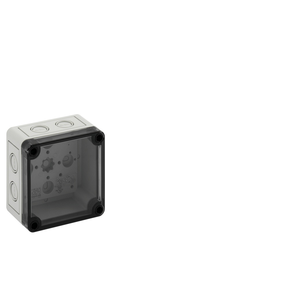 Spelsberg Leergehäuse 10600301 Typ TK PS 99-6-tm Leergehäuse TK PS 99-6-tm, Leergehäuse, Kasten: Polystyrol, grau, ähnlich RAL 7035, Deckel: Polycarbonat, transparent, Schutzart IP66, mit Schutz Grad IK07, Schutzklasse II, Bemessungsisolationsspannung Ui 690VAC/DC, Ui=1000VDC, Halogenfrei, 94x94x57, mit metrischen Vorprägungen EAN Nr. 4013902861347 Warengruppe Spelsberg Kunststoff Gehäuse