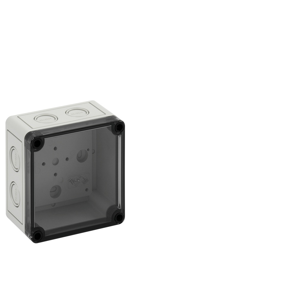Spelsberg Leergehäuse 10600401 Typ TK PS 1111-7-tm Leergehäuse TK PS 1111-7-tm, Leergehäuse, Kasten: Polystyrol, grau, ähnlich RAL 7035, Deckel: Polycarbonat, transparent, Schutzart IP66, mit Schutz Grad IK07, Schutzklasse II, Bemessungsisolationsspannung Ui 690VAC/DC, Ui=1000VDC, Halogenfrei, 110x110x66, mit metrischen Vorprägungen EAN Nr. 4013902861361 Warengruppe Spelsberg Kunststoff Gehäuse