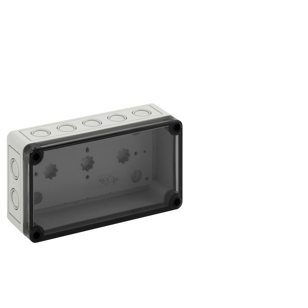 Spelsberg Leergehäuse 10601001 Typ TK PS 1809-6-tm Leergehäuse TK PS 1809-6-tm, Leergehäuse, Kasten: Polystyrol, grau, ähnlich RAL 7035, Deckel: Polycarbonat, transparent, Schutzart IP66, mit Schutz Grad IK07, Schutzklasse II, Bemessungsisolationsspannung Ui 690VAC/DC, Ui=1000VDC, Halogenfrei, 180x94x57, mit metrischen Vorprägungen EAN Nr. 4013902861422 Warengruppe Spelsberg Kunststoff Gehäuse