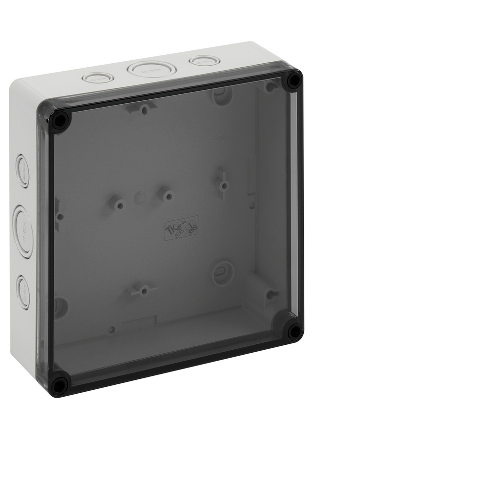 Spelsberg Leergehäuse 10601301 Typ TK PS 1818-6f-tm Leergehäuse TK PS 1818-6f-tm, Leergehäuse, Kasten: Polystyrol, grau, ähnlich RAL 7035, Deckel: Polycarbonat, transparent, Schutzart IP66, mit Schutz Grad IK07, Schutzklasse II, Bemessungsisolationsspannung Ui 690VAC/DC, Ui=1000VDC, Halogenfrei, 182x180x63, mit metrischen Vorprägungen EAN Nr. 4013902933013 Warengruppe Spelsberg Kunststoff Gehäuse