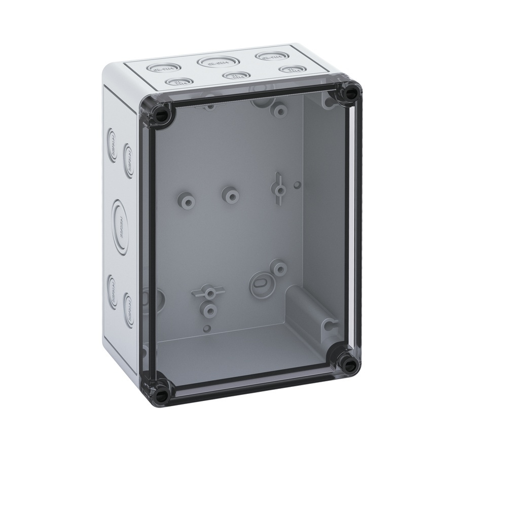 Spelsberg Leergehäuse 13701601 Typ TK PC 1813-9-tm Leergehäuse TK PC 1813-9-tm, Leergehäuse-Industrie Qualität, Kasten: glasfaserverstärktes Polycarbonat, grau, ähnlich RAL 7035, Deckel: Polycarbonat, transparent, Schutzart IP66, Schlagfestigkeit IK08, Schutzklasse II, Bemessungsisolationsspannung Ui 690VAC/DC, Ui=1000VDC, Halogenfrei, 180x130x90, mit metrischen Vorprägungen EAN Nr. 4013902352678 Warengruppe Spelsberg Kunststoff Gehäuse