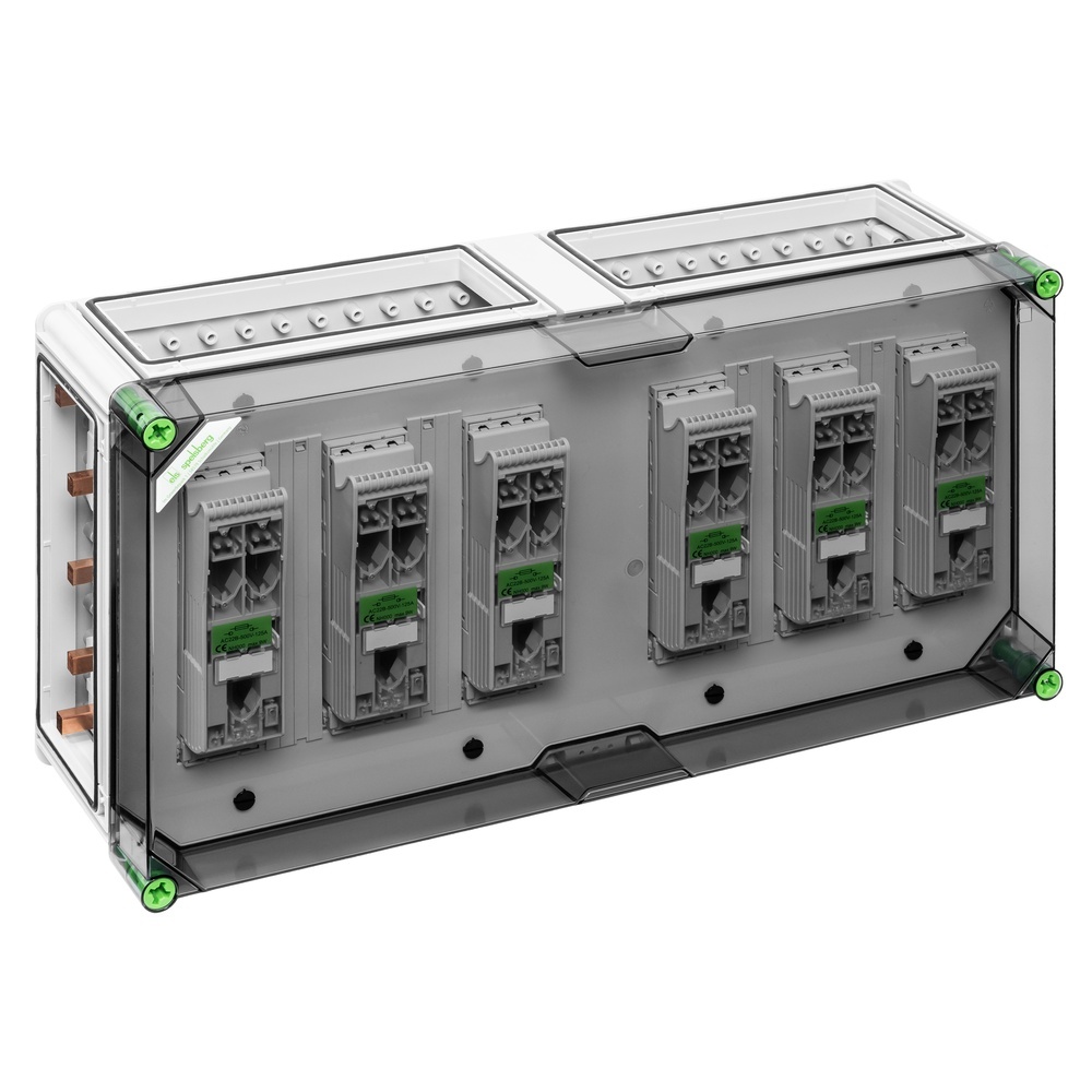 Spelsberg NH Reiterlasttrennergehäuse 04646586 Typ GST 4365-630 NH-Reiterlasttrennergehäuse, Schutzart IP65, Schlagfestigkeit IK08, Schutzklasse II, Bemessungsspannung 690V AC, halogenfrei NH-Reiter-Sicherungs-Lasttrennschaltergehäuse, 6xNH 000-Reiter-Sicherungs-Lasttrennschalter, Fahrstuhlklemme 1,5-50mm², Abgang unten, auf Sammelschiene 5-polig, mit 5 Sammelschienenklemmen zum direkten Anschluss eines Kabels an das Sammelschienensystem, zusätzliche N- und PE-Klemme für jeden Trennschalter, 4xGehäuseverbinder (GGV), Sammelschienensystem 630 A, mit transparentem Deckel Abmessungen: 640x320x179mm Hersteller Spelsberg Nr. 04646586 Typ GST 4365-630 EAN Nr. 4013902689484 Warengruppe Spelsberg NS Schaltanlagen
