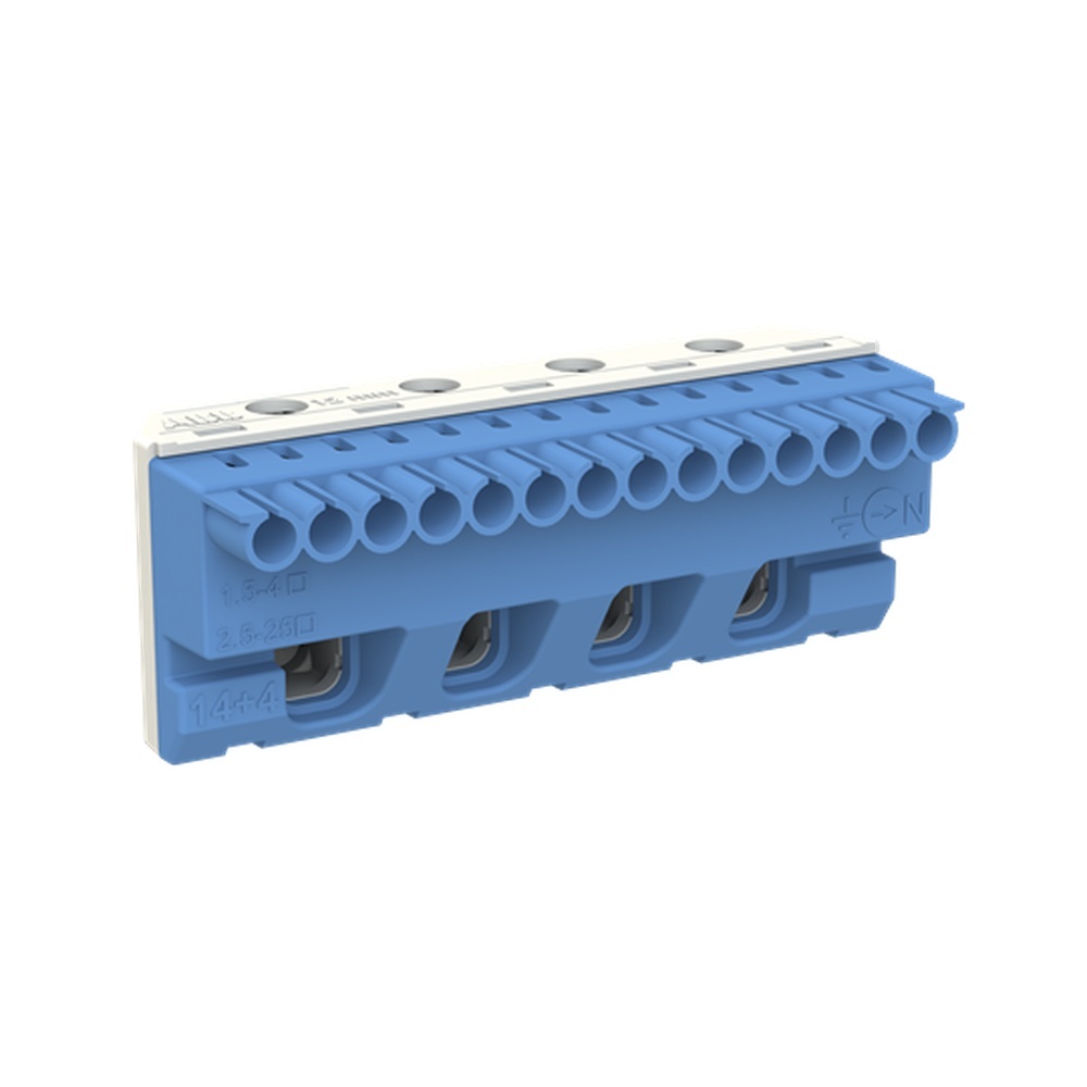 Striebel & John N-Klemmenblock 2CPX062754R9999 Typ ZK144B N Quick-Steckklemme für Quick-Steckträger, werkzeuglose Montage durch einfache Steck- und Rasttechnik, klare Farbcodierung: N = blau, flexibles Klemmensystem für mehrere N-Stromkreise, Anzahl der Klemmen: 14x1,5-4 mm² (Federklemmtechnik) + 4x2,5 bis 25 mm² (Schraubanschlusstechnik), Außenmaße HxBxT in mm: 32x82x31, einfaches Beschriften der Klemmenstellen (DIN VDE 0603 Teil 1) mit vorgedruckten, selbstklebenden Zahlenstreifen. EAN Nr. 4011617627548 Warengruppe Striebel & John Zubehör