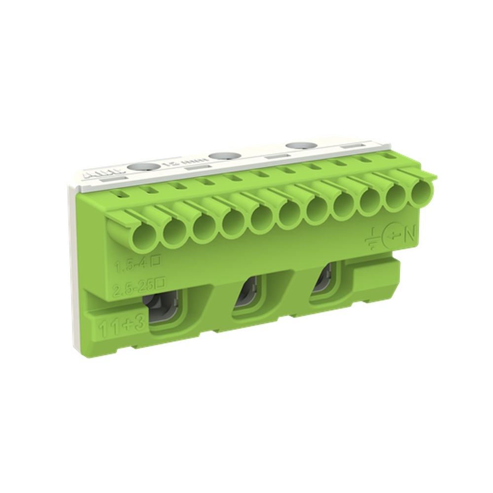 Striebel & John PE-Klemmenblock 2CPX062759R9999 Typ ZK113G PE Quick-Steckklemme für Quick-Steckträger, werkzeuglose Montage durch einfache Steck- und Rasttechnik, klare Farbcodierung: PE = gelb-grün, flexibles Klemmensystem, Anzahl der Klemmen: 11x1,5-4 mm² (Federklemmtechnik) + 3x2,5 bis 25 mm² (Schraubanschlusstechnik), Außenmaße HxBxT in mm: 32x65x31, einfaches Beschriften der Klemmenstellen (DIN VDE 0603 Teil 1) mit vorgedruckten, selbstklebenden Zahlenstreifen. EAN Nr. 4011617627593 Warengruppe Striebel & John Zubehör