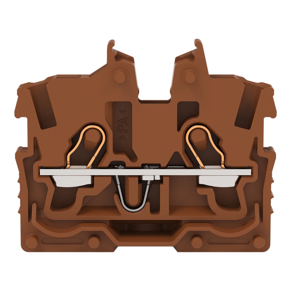 Wago 2Leiter Mini Durchgangsklemme 2050-301/000-014 2-Leiter-Mini-Durchgangsklemme, mit Betätigungsöffnung, 1 mm², Endklemme mit Befestigungsflansch, seitliche und mittige Beschriftung, mit Prüföffnung, Push-in CAGE CLAMP, 1,00 mm², braun Hersteller Wago Klemmen EAN Nr. 4066966312140 Warengruppe WAGO Miniklemmen