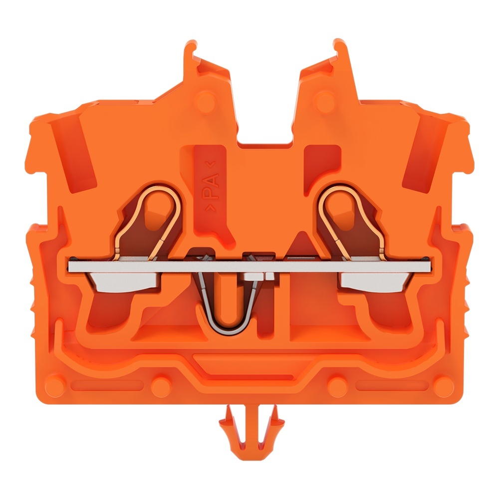 Wago 2Leiter Mini Durchgangsklemme 2050-312 2-Leiter-Mini-Durchgangsklemme, mit Betätigungsöffnung, 1 mm², mit Rastfuß, seitliche und mittige Beschriftung, mit Prüföffnung, Push-in CAGE CLAMP, 1,00 mm², orange Hersteller Wago Klemmen EAN Nr. 4066966312454 Warengruppe WAGO Miniklemmen