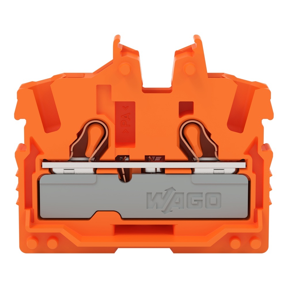 Wago 2Leiter Mini Durchgangsklemme 2052-302 2-Leiter-Mini-Durchgangsklemme, mit Betätigungsöffnung, 2,5 mm², Endklemme mit Befestigungsflansch, seitliche und mittige Beschriftung, mit Prüföffnung, Push-in CAGE CLAMP, 2,50 mm², orange Hersteller Wago Klemmen EAN Nr. 4066966312522 Warengruppe WAGO Miniklemmen