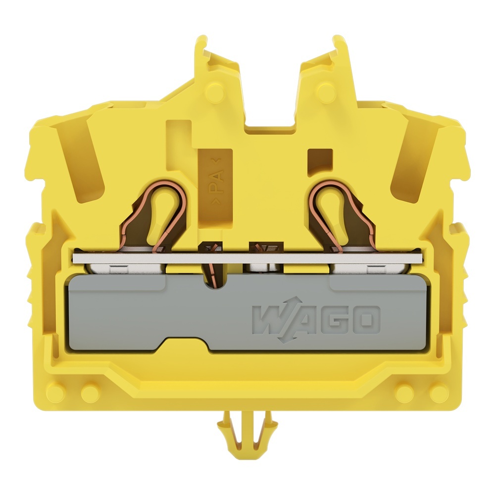 Wago 2Leiter Mini Durchgangsklemme 2052-316 2-Leiter-Mini-Durchgangsklemme, mit Betätigungsöffnung, 2,5 mm², mit Rastfuß, seitliche und mittige Beschriftung, mit Prüföffnung, Push-in CAGE CLAMP, 2,50 mm², gelb Hersteller Wago Klemmen EAN Nr. 4066966312072 Warengruppe WAGO Miniklemmen